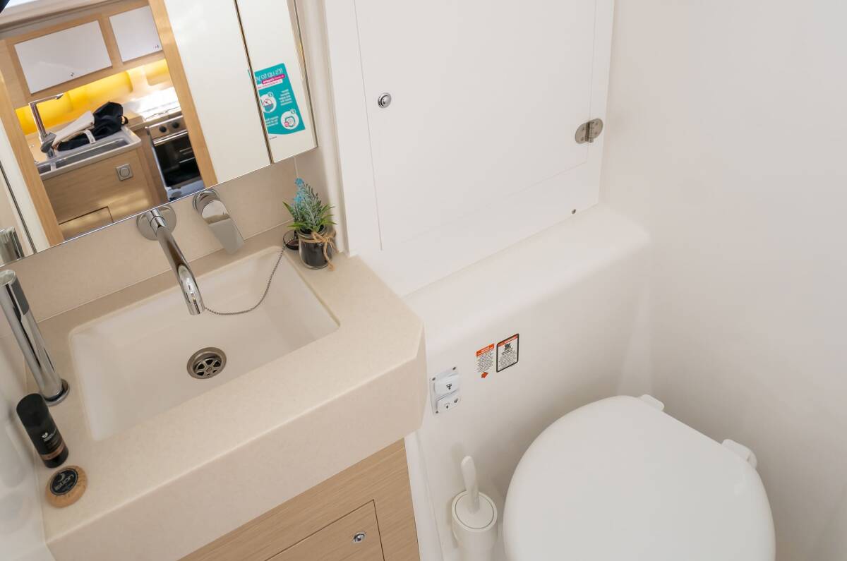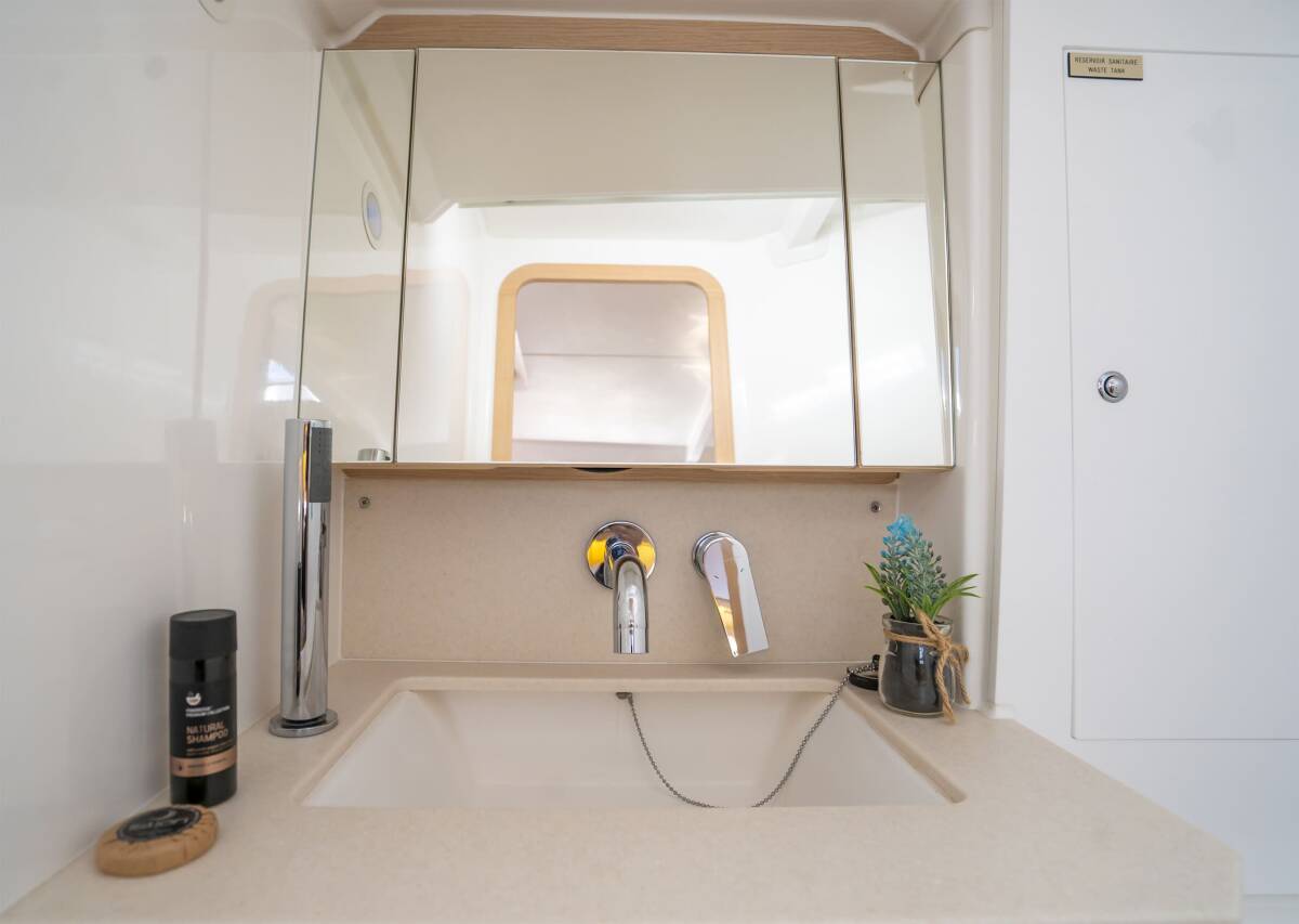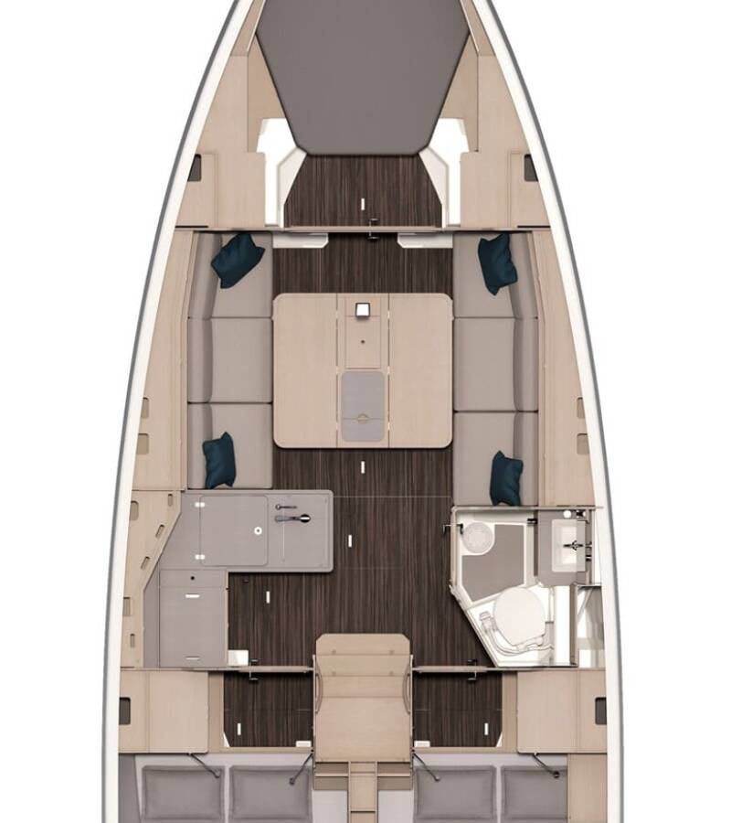 The Dufour 37 „First Laugh“ offers special comfort with the following equipment features: Cockpit cushions, Bathing platform, Electric toilet, Solar panels.