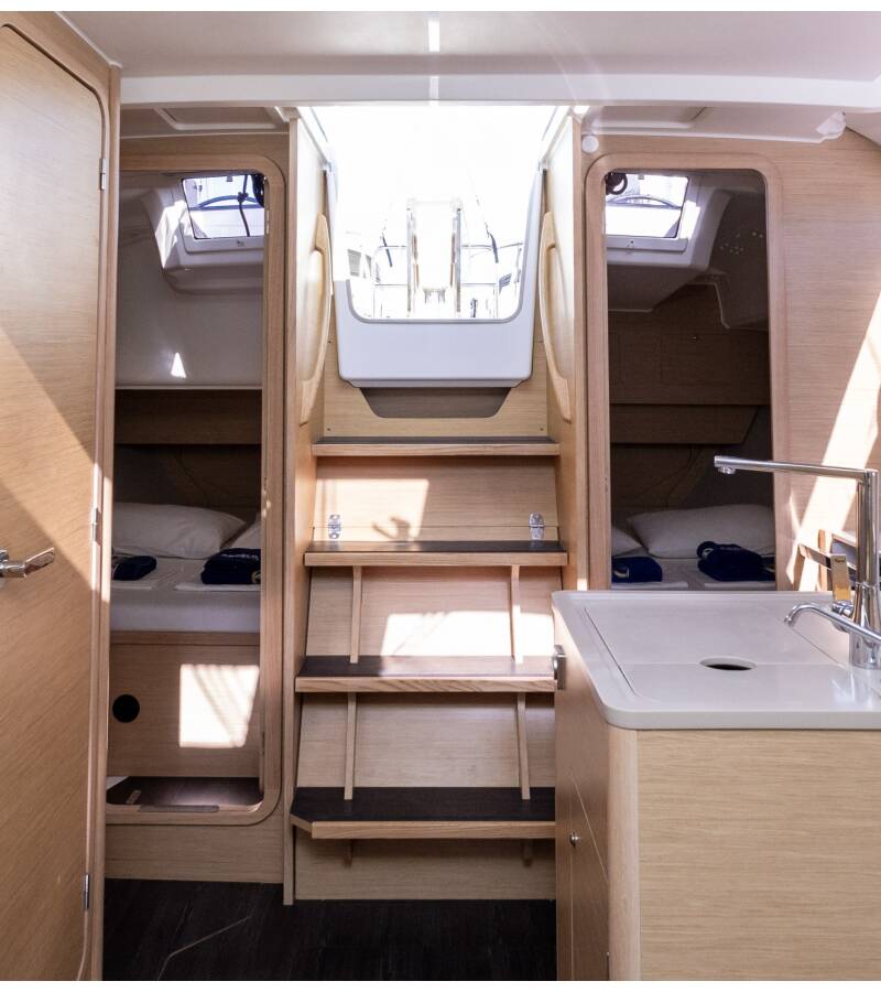 The Dufour 37 „Lumi“ offers special comfort with the following equipment features: Bow thruster, Cockpit cushions, Bathing platform, Electric toilet, Solar panels, Cockpit grill.