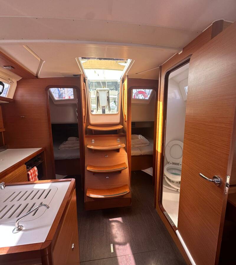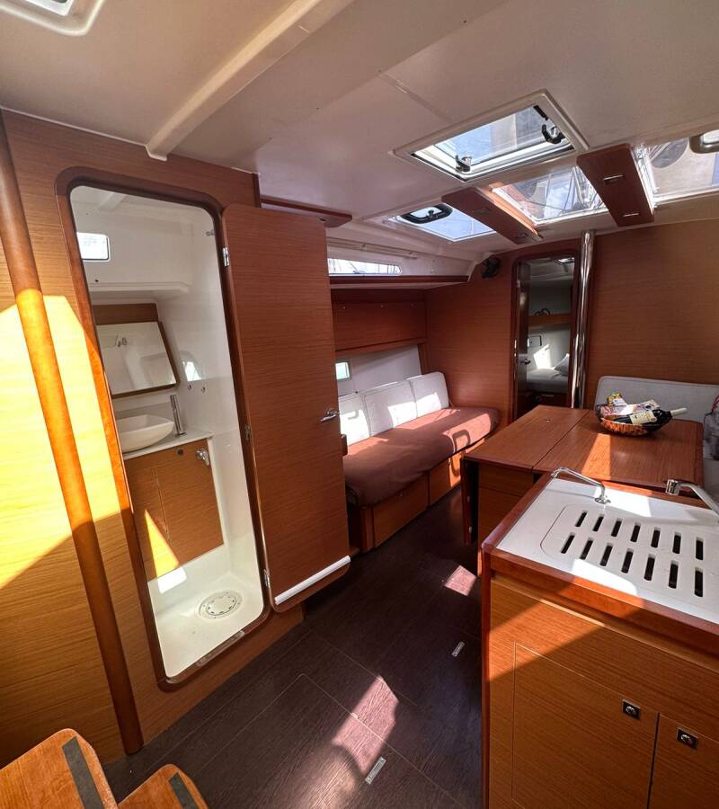 The Dufour 390 „Ino“ offers special comfort with the following equipment features: Bow thruster, Cockpit cushions, Bathing platform, Electric toilet, Solar panels.