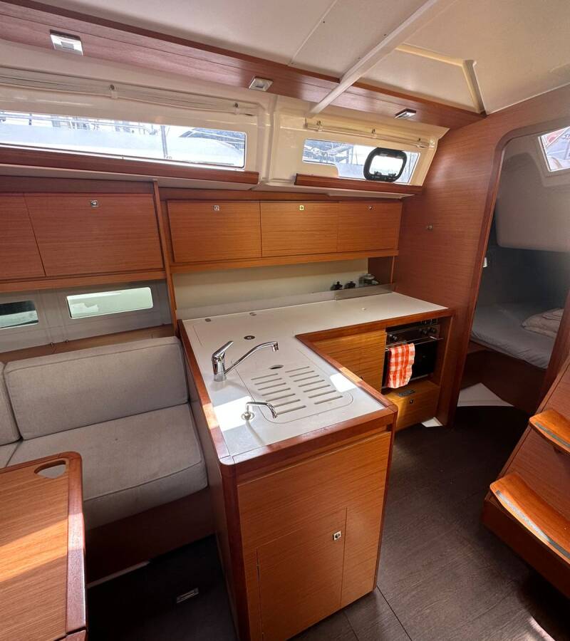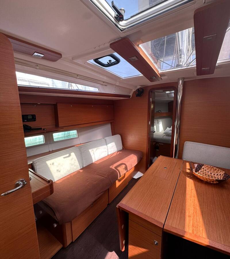 The Dufour 390 „Ino“ is equipped with a mainsail and a genoa as well as a Bimini top, Autopilot, Sprayhood.