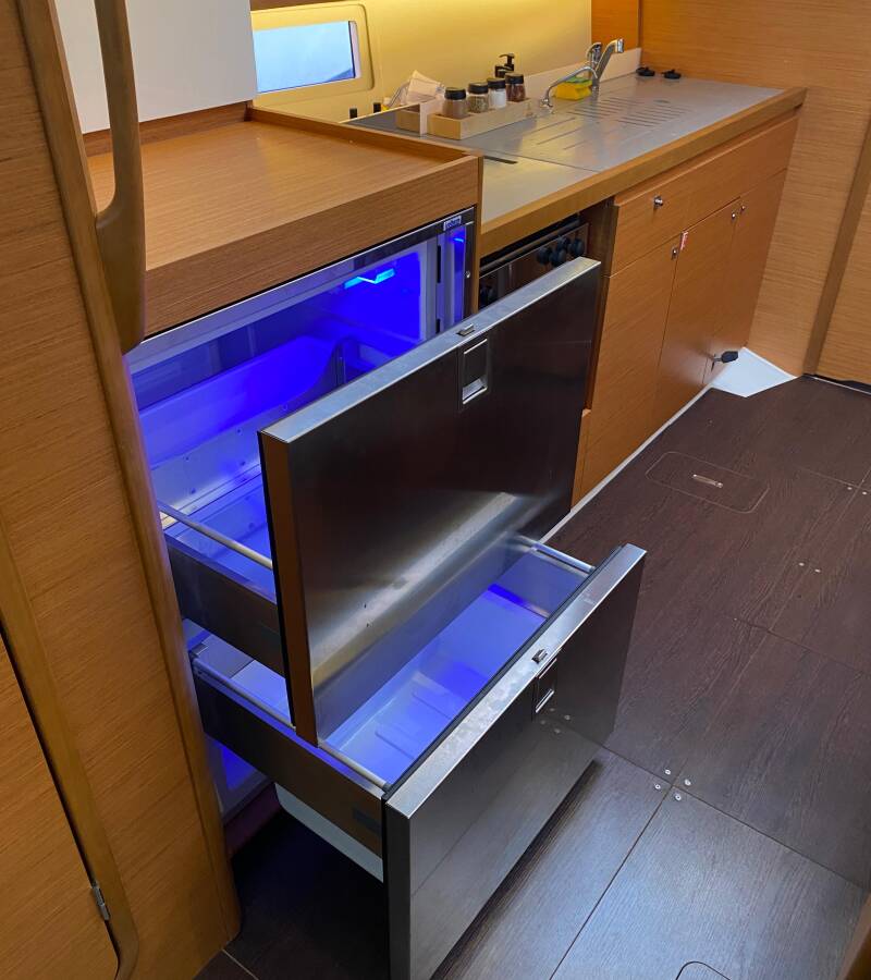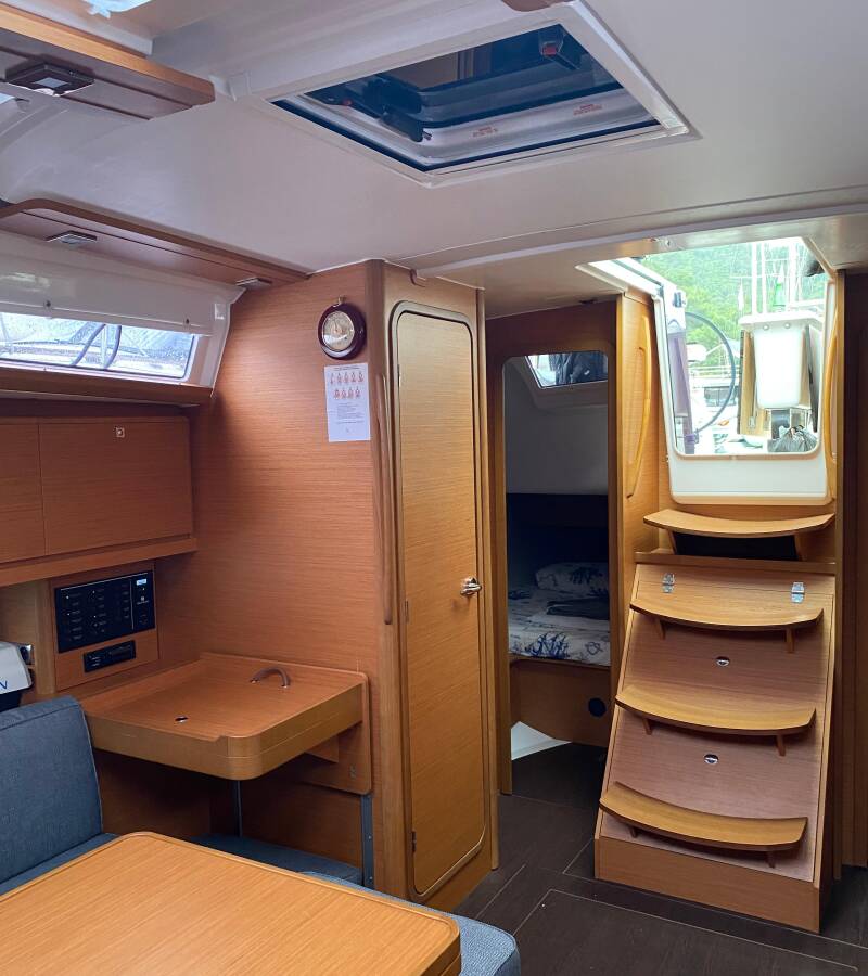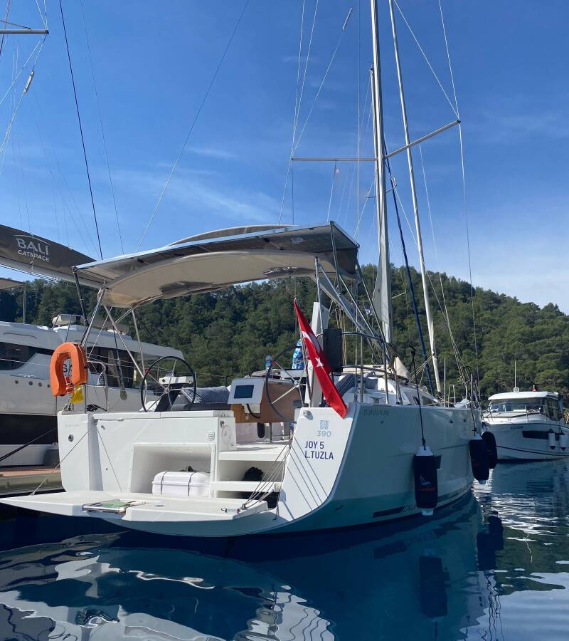 The Dufour 390 „Joy 5“ offers special comfort with the following equipment features: Bathing platform, Inverter, Solar panels.