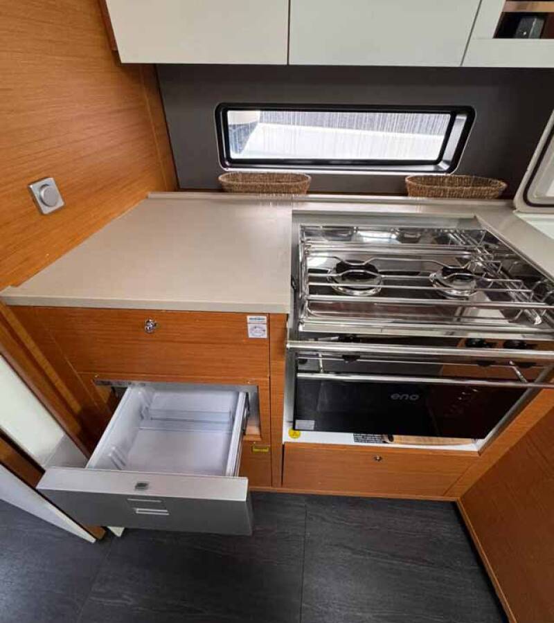 The Dufour 41 „Fuego del Viento“ offers special comfort with the following equipment features: Bow thruster, Cockpit cushions, Inverter, Solar panels, Cockpit grill.