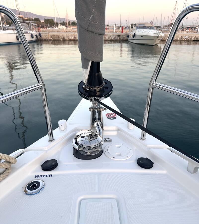 The Dufour 41 „Ismini“ offers special comfort with the following equipment features: Bow thruster, Bathing platform, Inverter, Electric toilet, Solar panels.