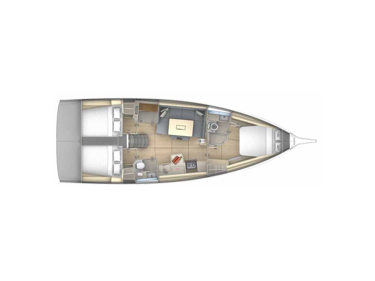 The Dufour 41 Performance „Leni“ is equipped with a mainsail and a genoa as well as a Bimini top, Autopilot, Sprayhood, Heating, Teak cockpit, GPS chart plotter - cockpit.