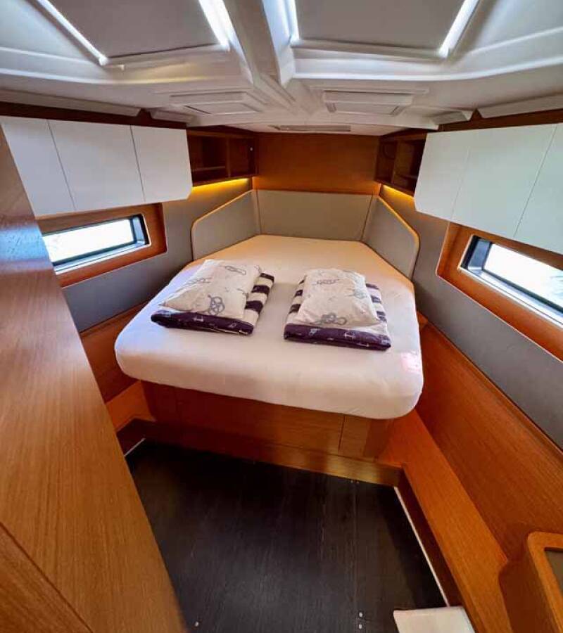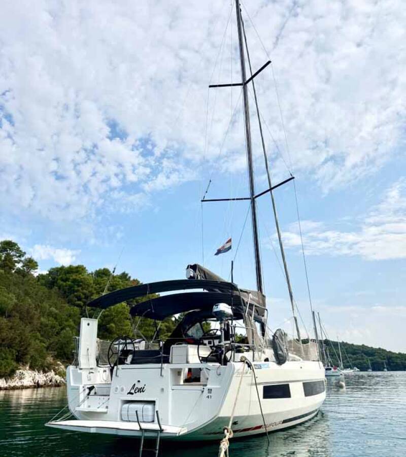 The Sailing yacht Dufour 41 Performance „Leni“, built in 2025, is moored in Marina Kornati, Biograd - Croatia. The yacht has 3 cabins, can accomodate 6 + 2 persons and has 2 toilets/showers.