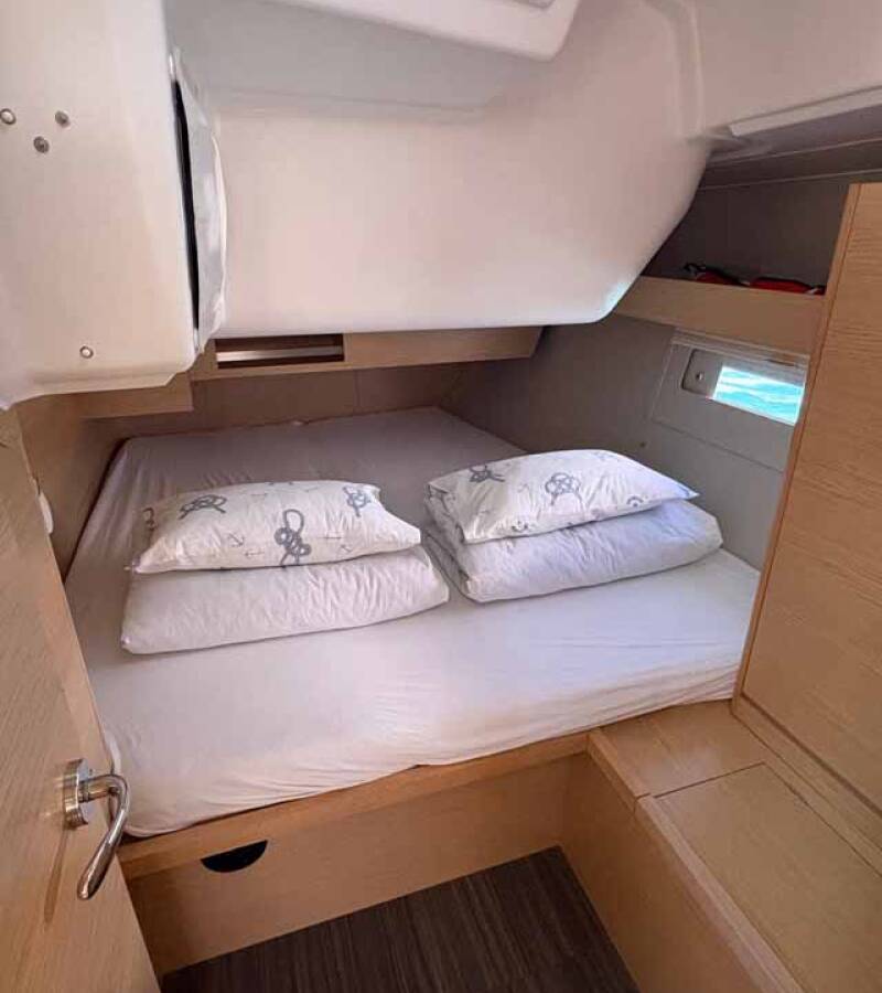 The Dufour 430 „Ansomo“ offers special comfort with the following equipment features: Bow thruster, Air Conditioning, Cockpit cushions, Inverter, Electric toilet, Solar panels, Cockpit grill.