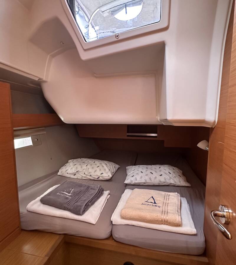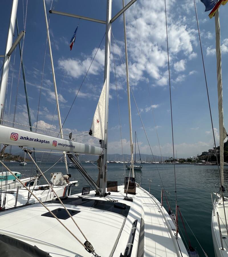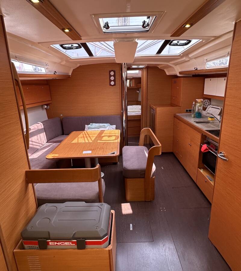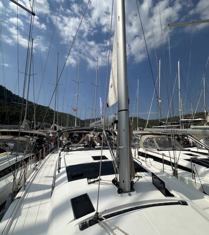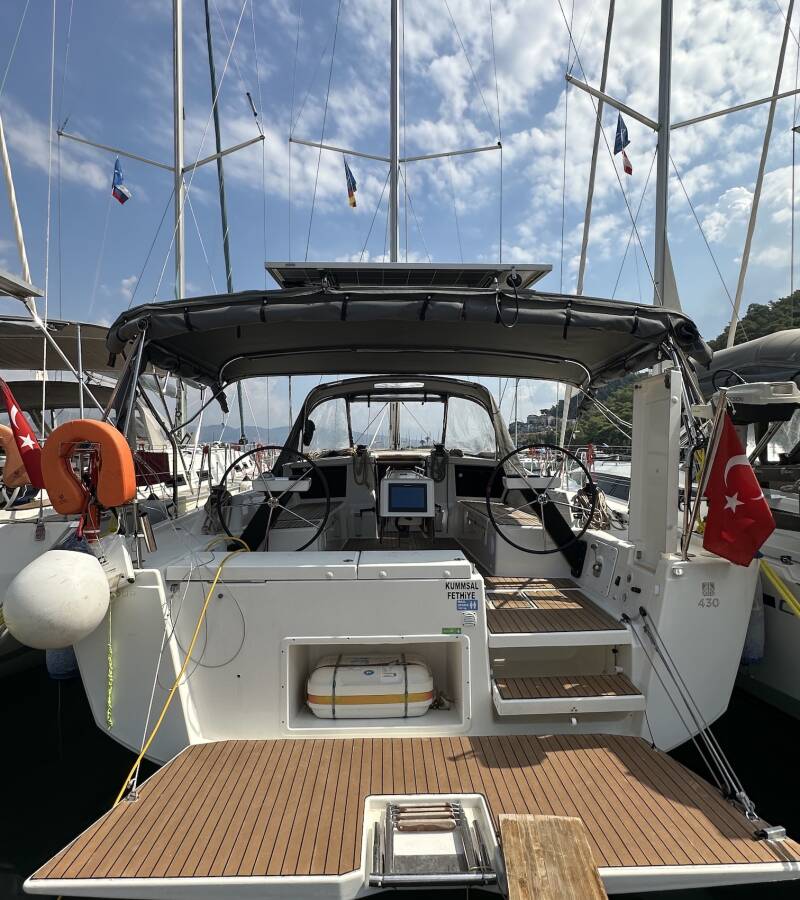 The Dufour 430 GL „Kummsal“ offers special comfort with the following equipment features: Bow thruster, Inverter, Solar panels, Cockpit grill.