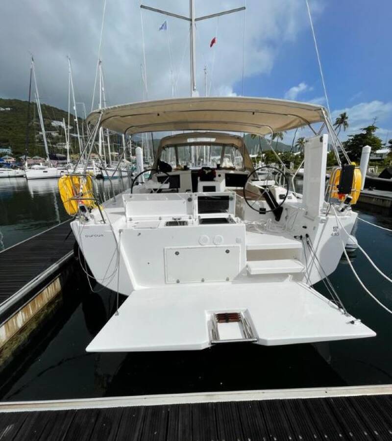 The Dufour 430 „Hoosier Lady“ is equipped with a mainsail and a genoa as well as a Autopilot, Sprayhood.