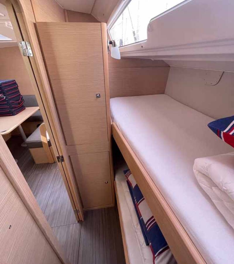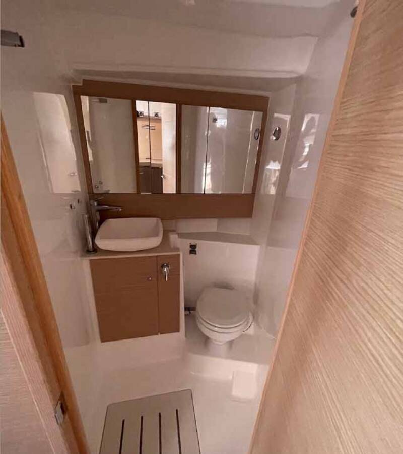 The Dufour 430 „Karla“ offers special comfort with the following equipment features: Bow thruster, Air Conditioning, Electric toilet, Solar panels, Cockpit grill.