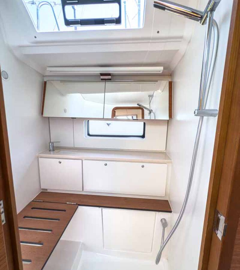 The Dufour 44 „Alkor“ offers special comfort with the following equipment features: Bow thruster, Air Conditioning, Cockpit cushions, Inverter, Solar panels, Cockpit grill.