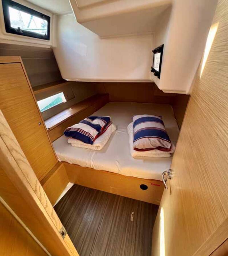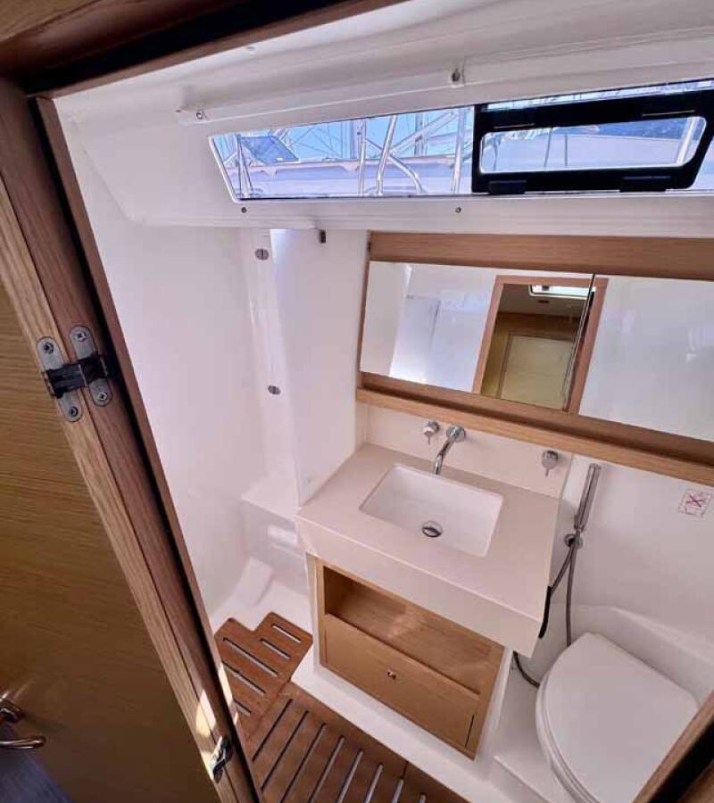 The Dufour 470 „Icarus“ offers special comfort with the following equipment features: Bow thruster, Air Conditioning, Cockpit cushions, Electric toilet, Solar panels, Cockpit grill.