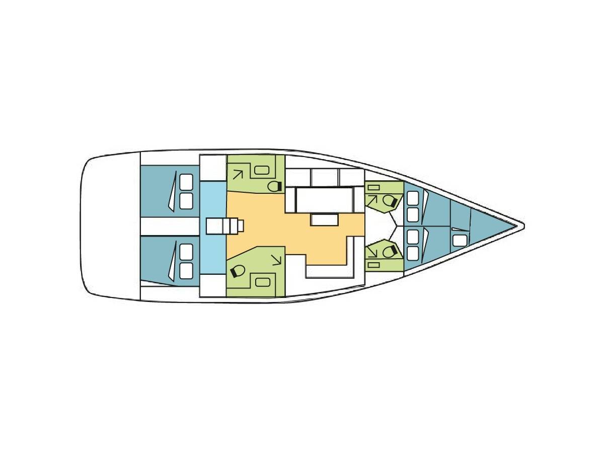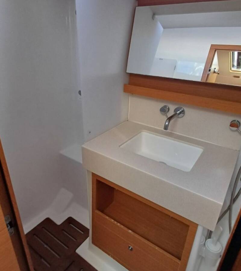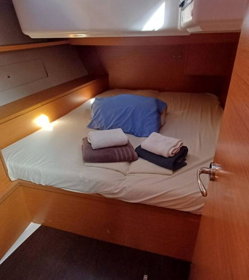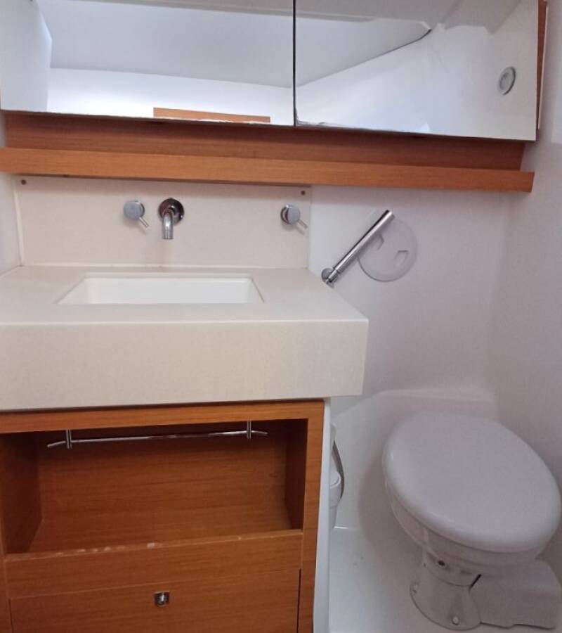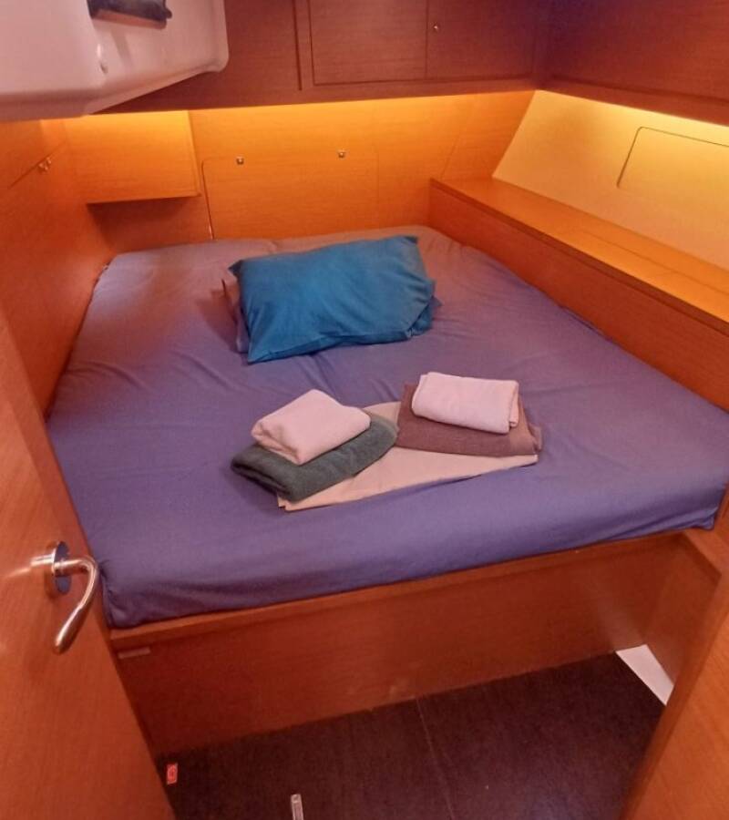 The Dufour 470 „KYBALION“ offers special comfort with the following equipment features: Bow thruster, Inverter, Electric toilet.