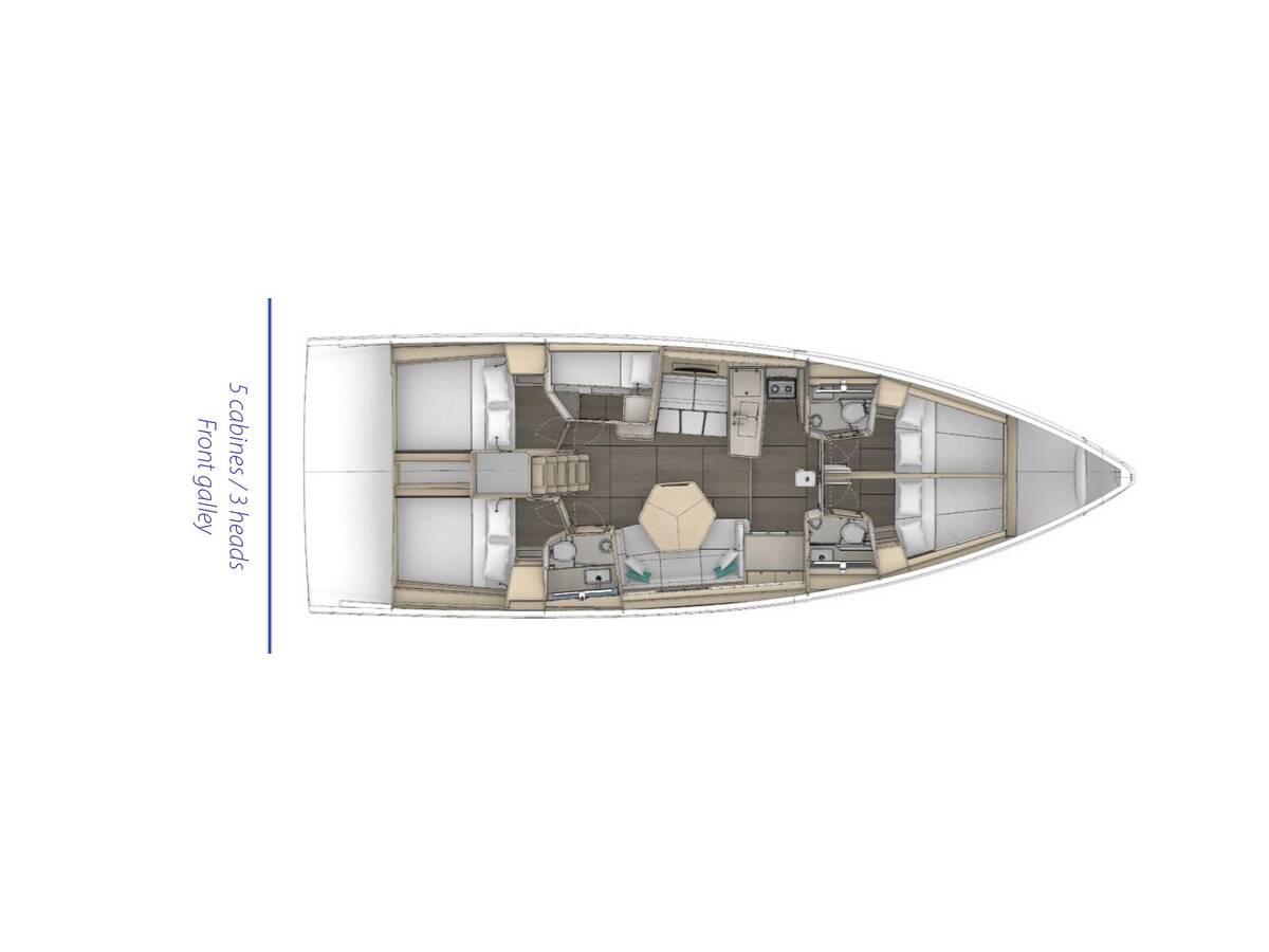 The Sailing yacht Dufour 48 „Bourini“, built in 2026, is moored in Lefkas main port - Greece. The yacht has 5 cabins, can accomodate 10 + 2 persons and has 3 toilets/showers.
