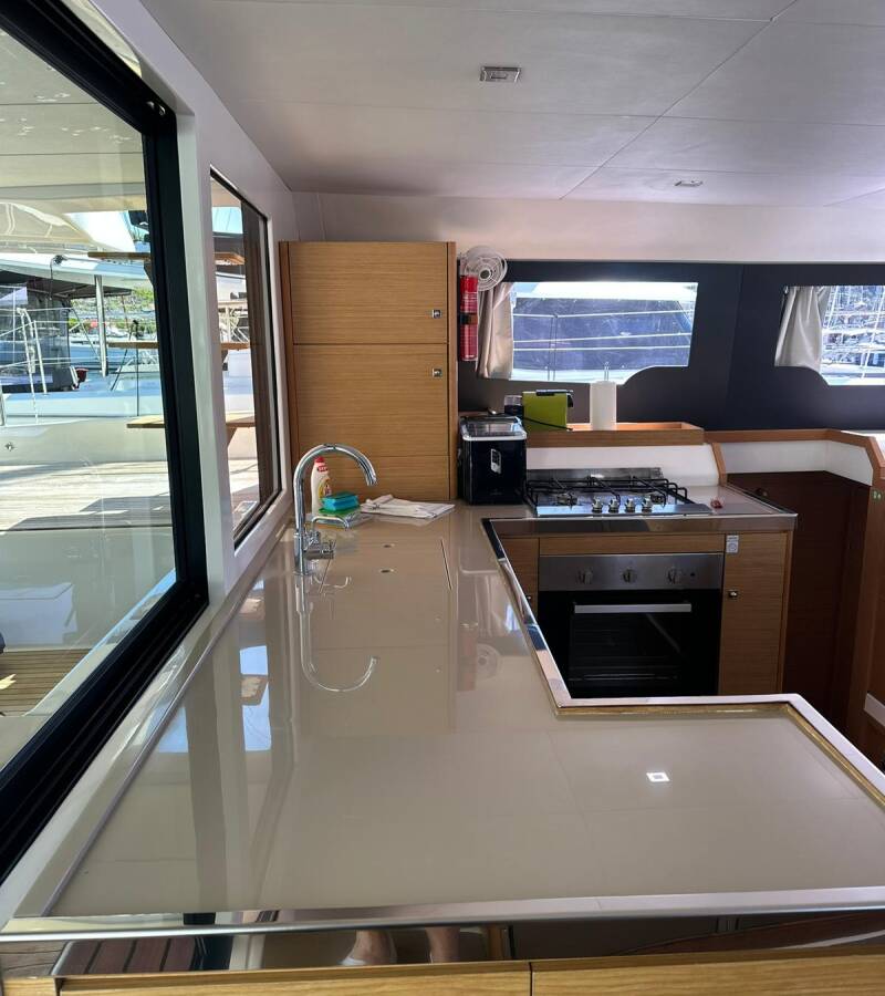 The Dufour 48 Catamaran „Casablanca“ offers special comfort with the following equipment features: Generator, Air Conditioning, Freezer, Inverter, Electric toilet, Dishwasher.