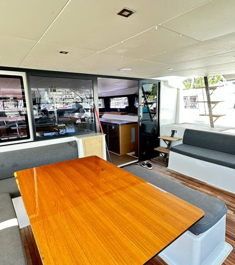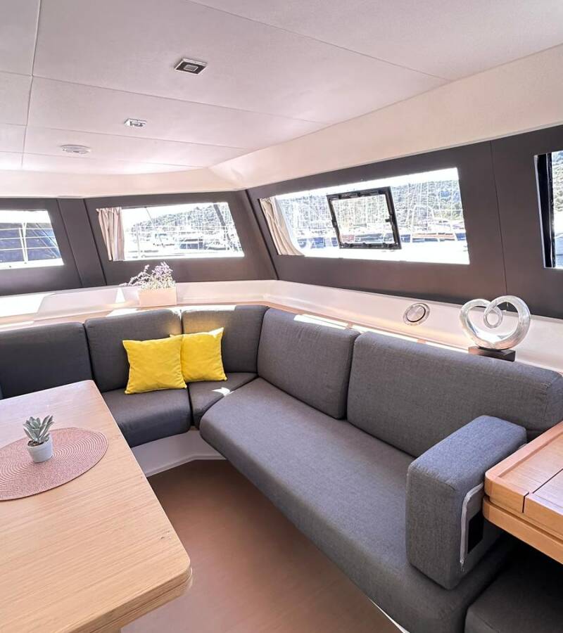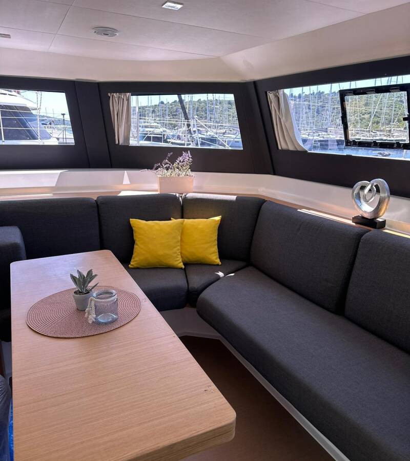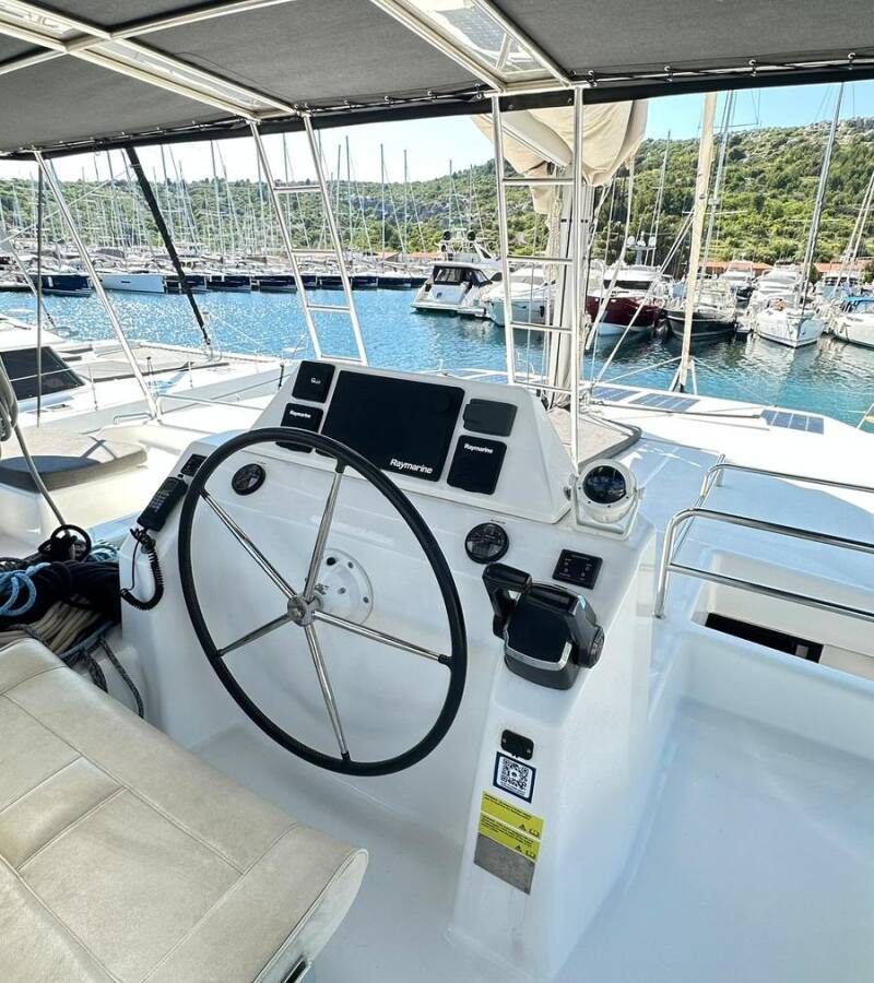 The Dufour 48 Catamaran „Casablanca“ is equipped with a mainsail and a genoa as well as a Autopilot, Heating, Teak cockpit.
