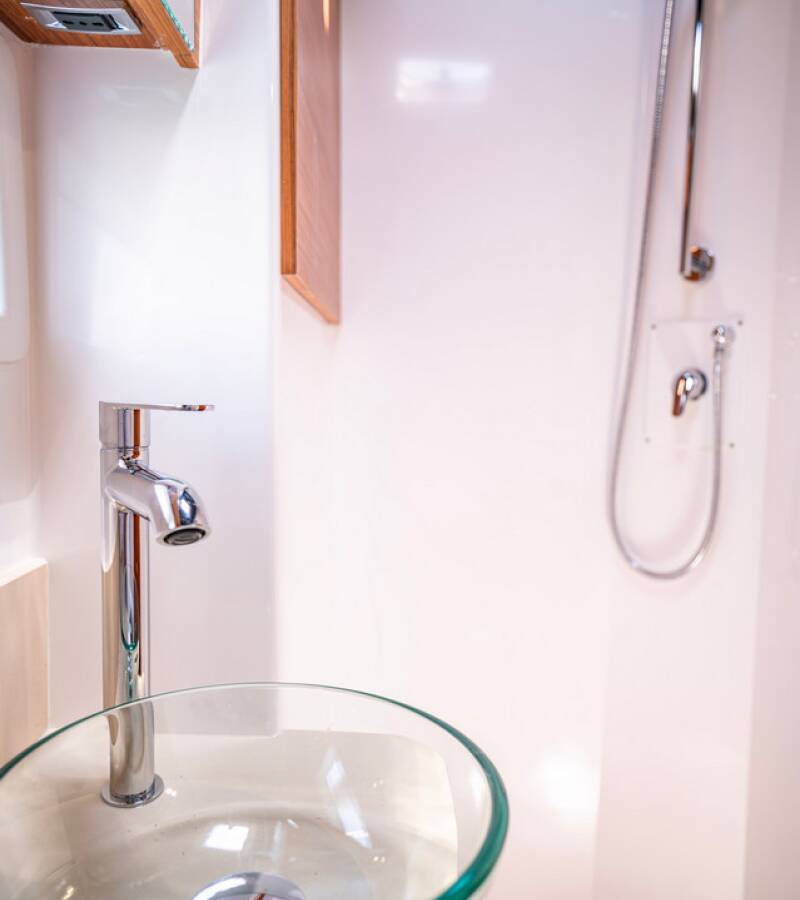 The Dufour 48 Catamaran „LoveMarine“ offers special comfort with the following equipment features: Generator, Air Conditioning, Freezer, Cockpit cushions, Inverter, Electric toilet, Dishwasher.