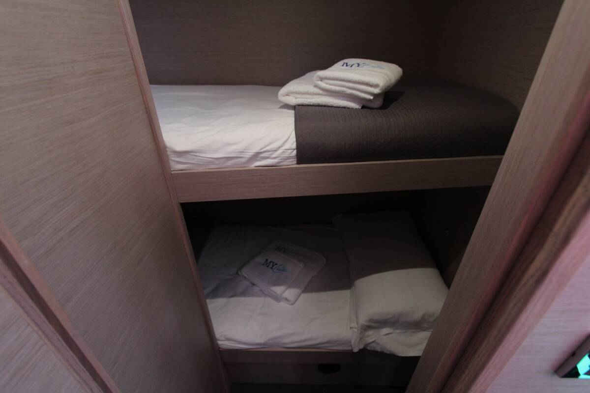 The Dufour 48 Catamaran „Lublu“ offers special comfort with the following equipment features: Generator, Air Conditioning, Freezer, Cockpit cushions, Electric toilet, Cockpit grill.