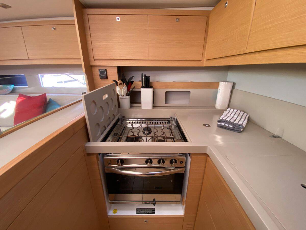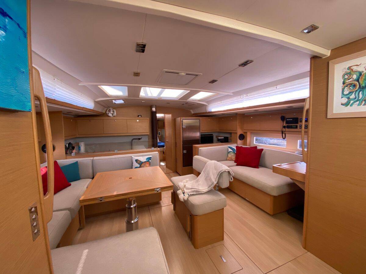 The Dufour 530 „Liliana Bella“ offers special comfort with the following equipment features: Bow thruster, Generator, Air Conditioning, Freezer, Bathing platform, Inverter, Electric toilet.