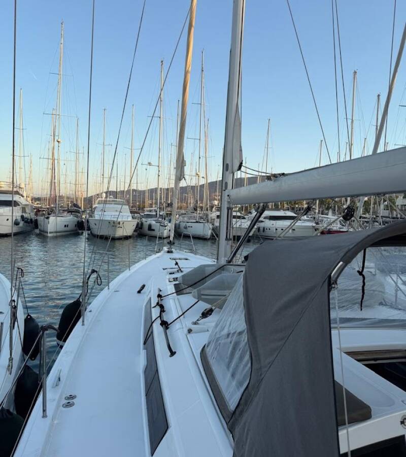 The Dufour 530 „Sofia“ is equipped with a mainsail and a genoa as well as a Bimini top, Autopilot, Sprayhood.