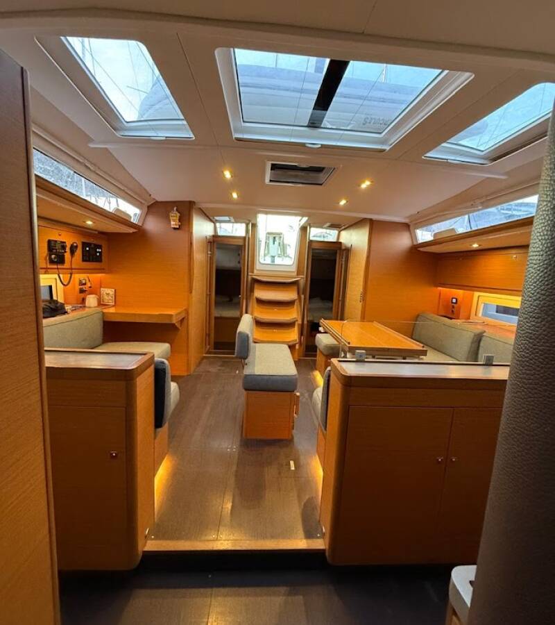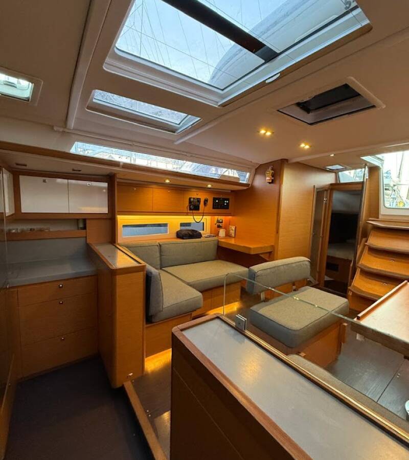 The Dufour 530 „Sofia“ offers special comfort with the following equipment features: Bow thruster, Generator, Air Conditioning, Freezer, Cockpit cushions, Bathing platform, Inverter, Electric toilet.