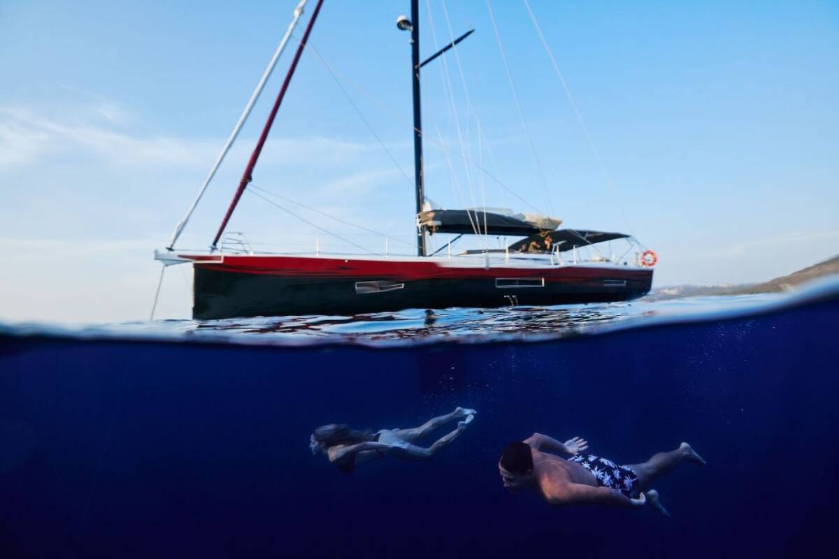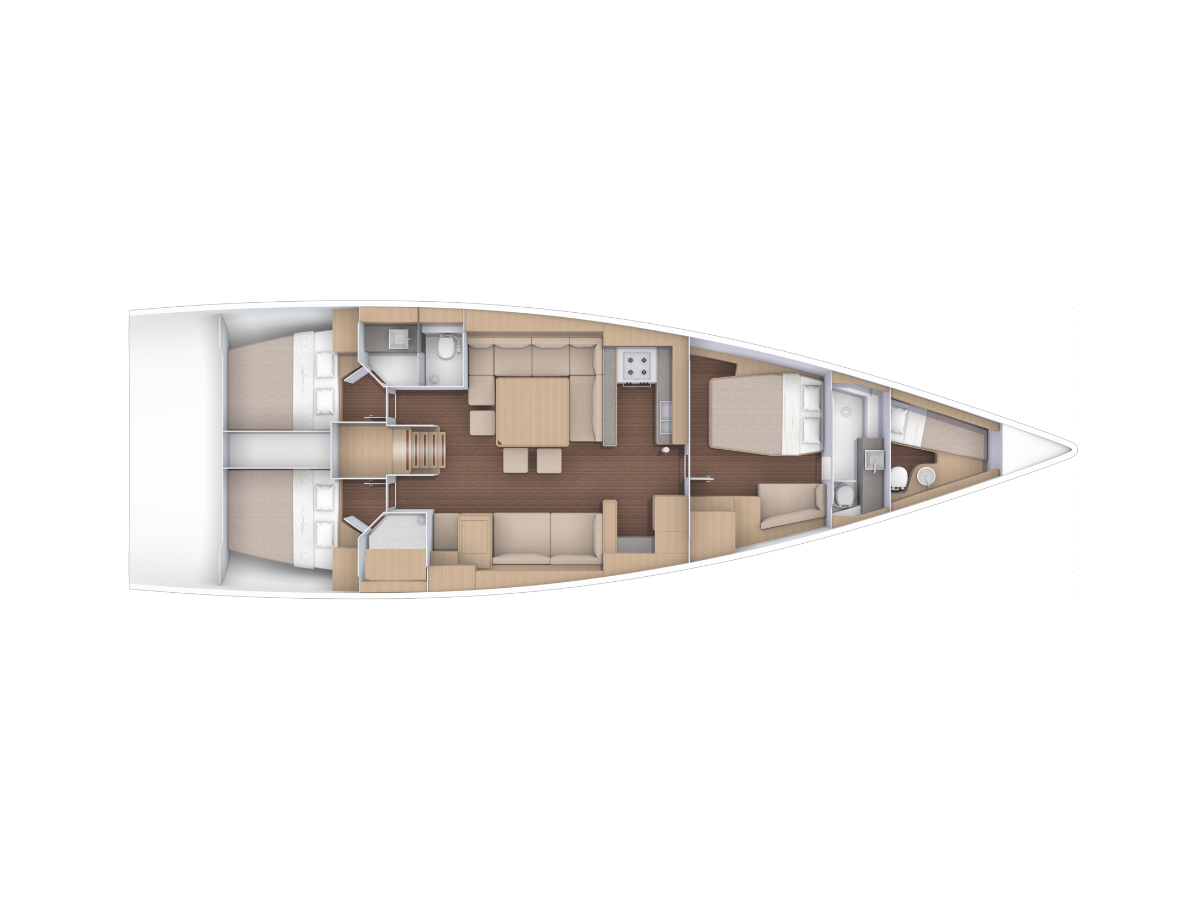 The Dufour Exclusive 56 „Kabuki - OW“ offers special comfort with the following equipment features: Bow thruster, Air Conditioning, Freezer, Washing machine, Bathing platform, Electric toilet, Dishwasher.
