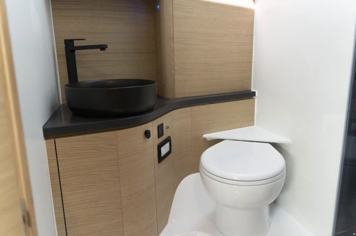 The Elan E6 „Sailing Grace“ offers special comfort with the following equipment features: Bow thruster, Air Conditioning, Cockpit cushions, Bathing platform, Inverter, Electric toilet.