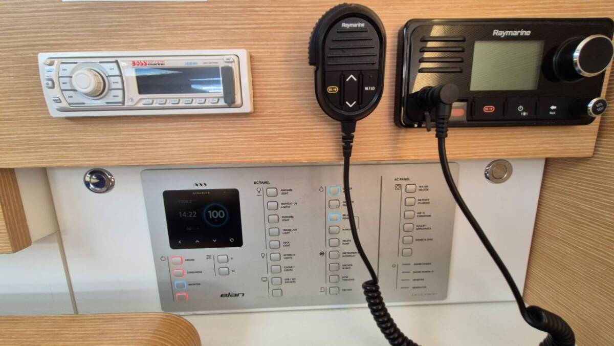The Elan Impression 40 „Shamal“ is equipped with a mainsail and a genoa as well as a Bimini top, Autopilot, Sprayhood, Heating, GPS chart plotter - cockpit.