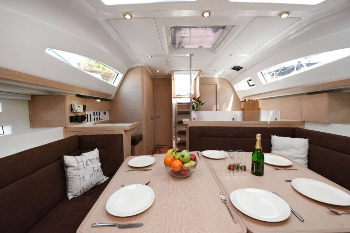 The Elan Impression 45 „Popaj“ offers special comfort with the following equipment features: Bow thruster, Air Conditioning, Freezer, Bathing platform, Inverter, Solar panels.