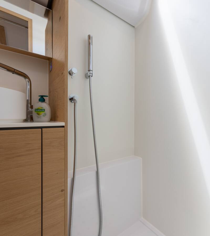 The Elan Impression 45 „Seabee Alpha“ offers special comfort with the following equipment features: Bow thruster, Air Conditioning, Cockpit cushions, Bathing platform.