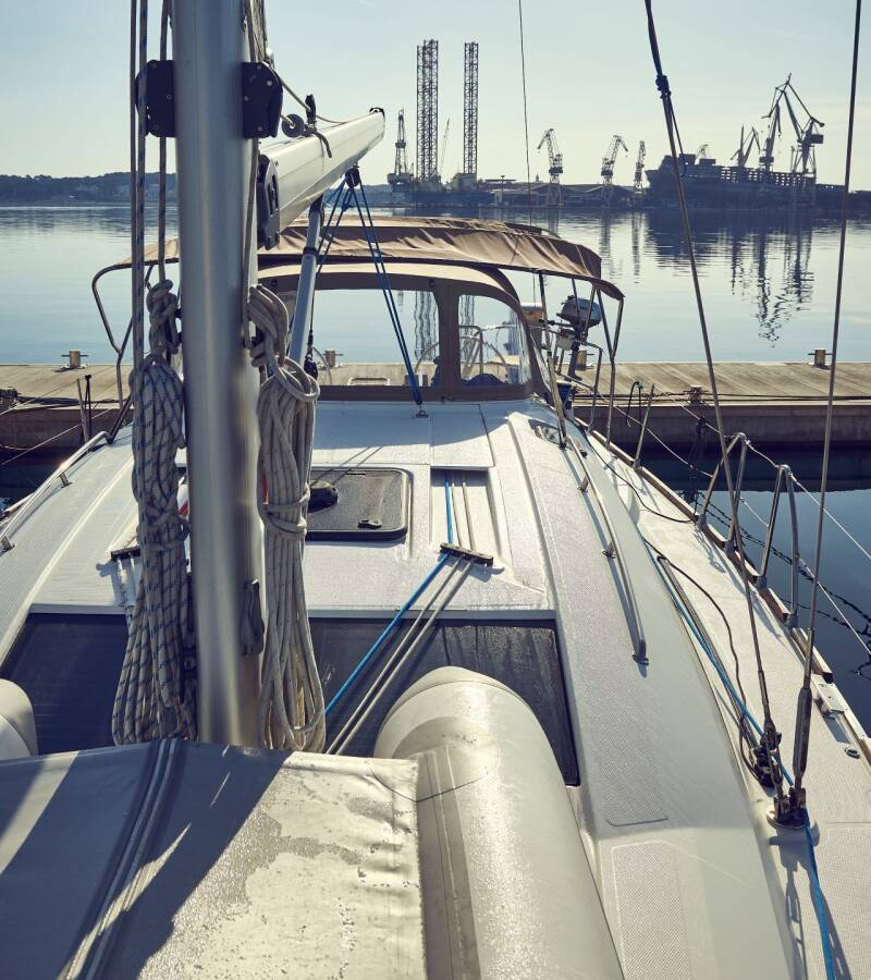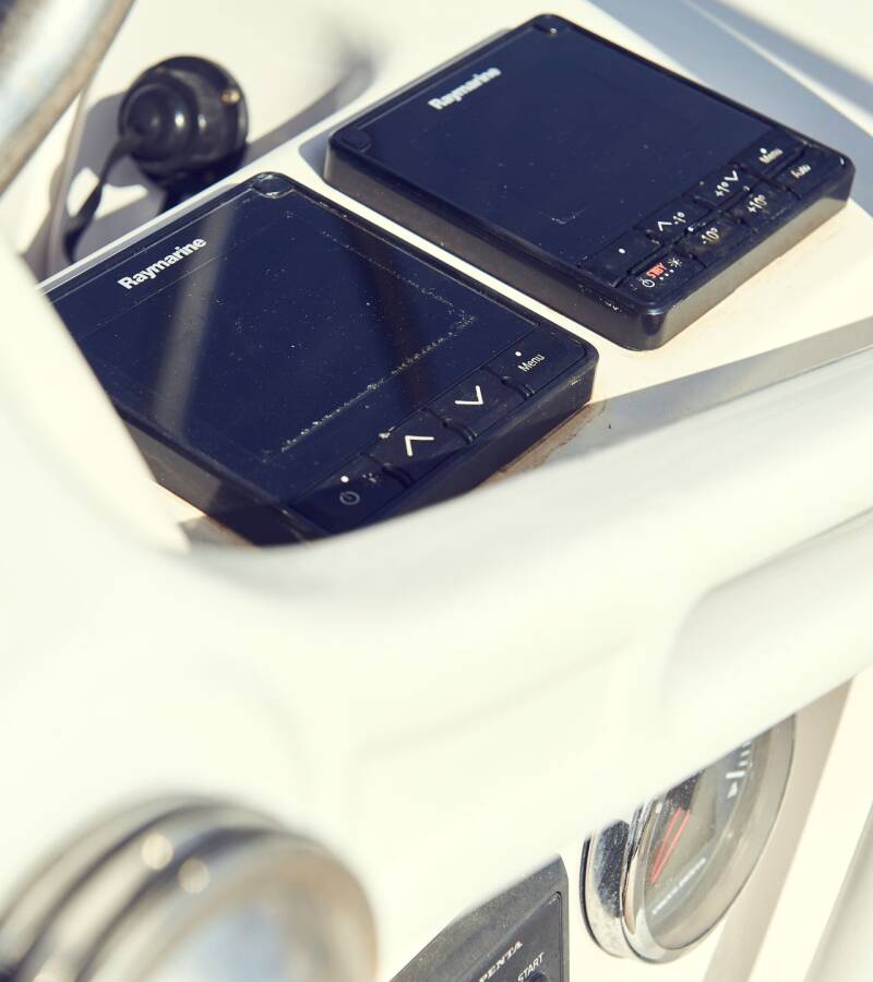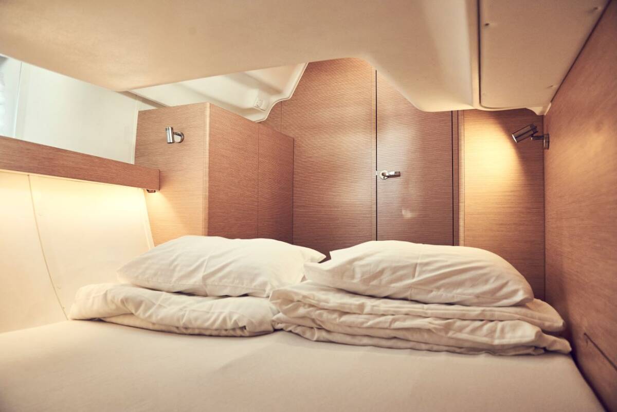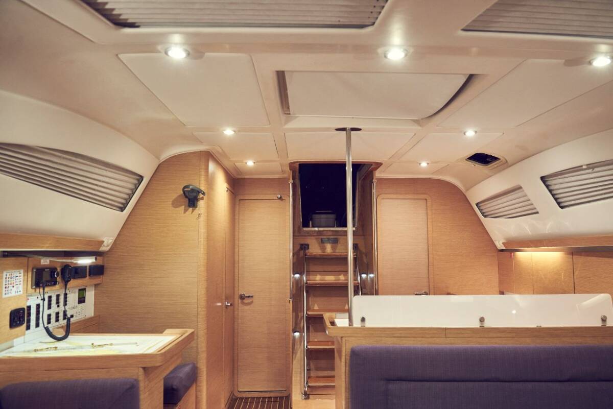 The Elan Impression 45 „Six Friends“ is equipped with a mainsail and a genoa as well as a Bimini top, Autopilot, Sprayhood, Heating, Teak cockpit, GPS chart plotter - cockpit.