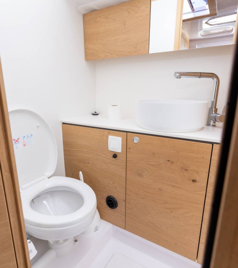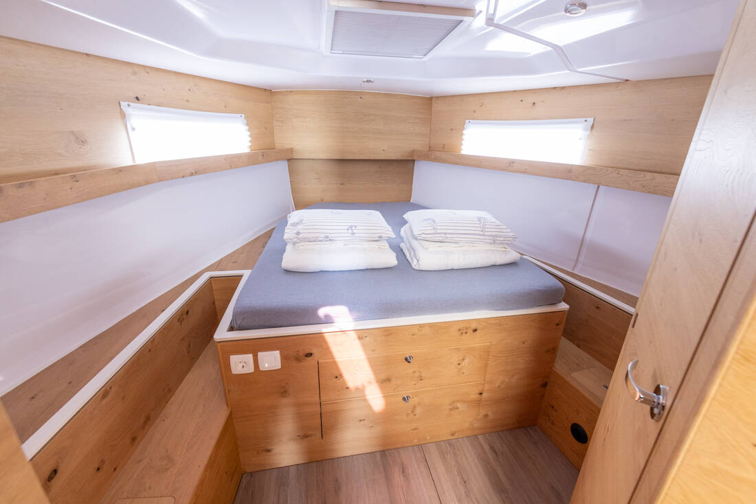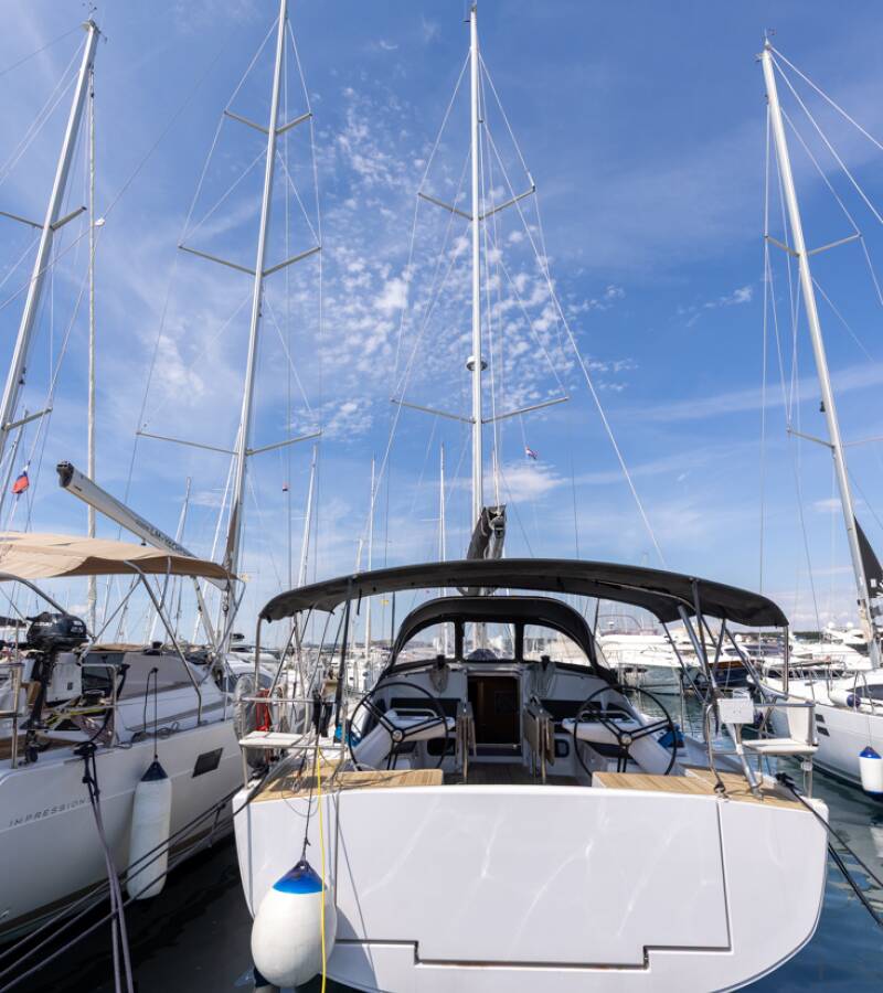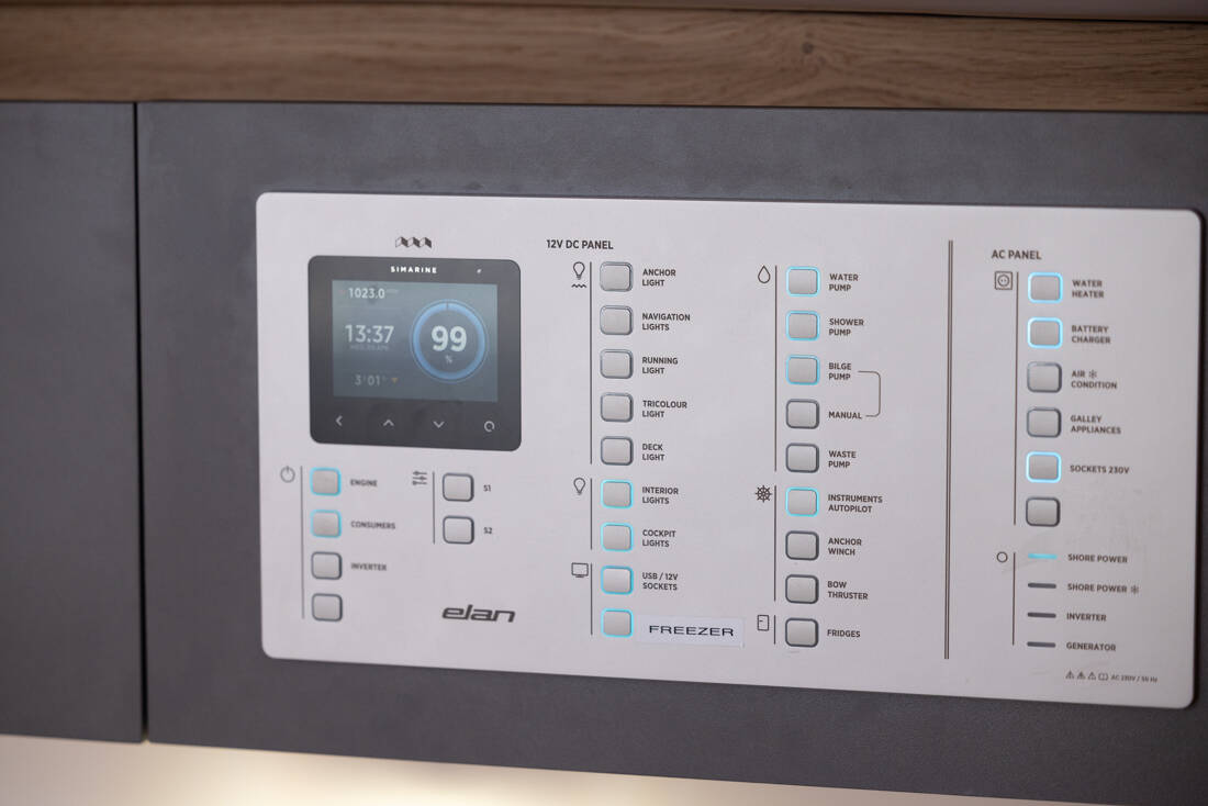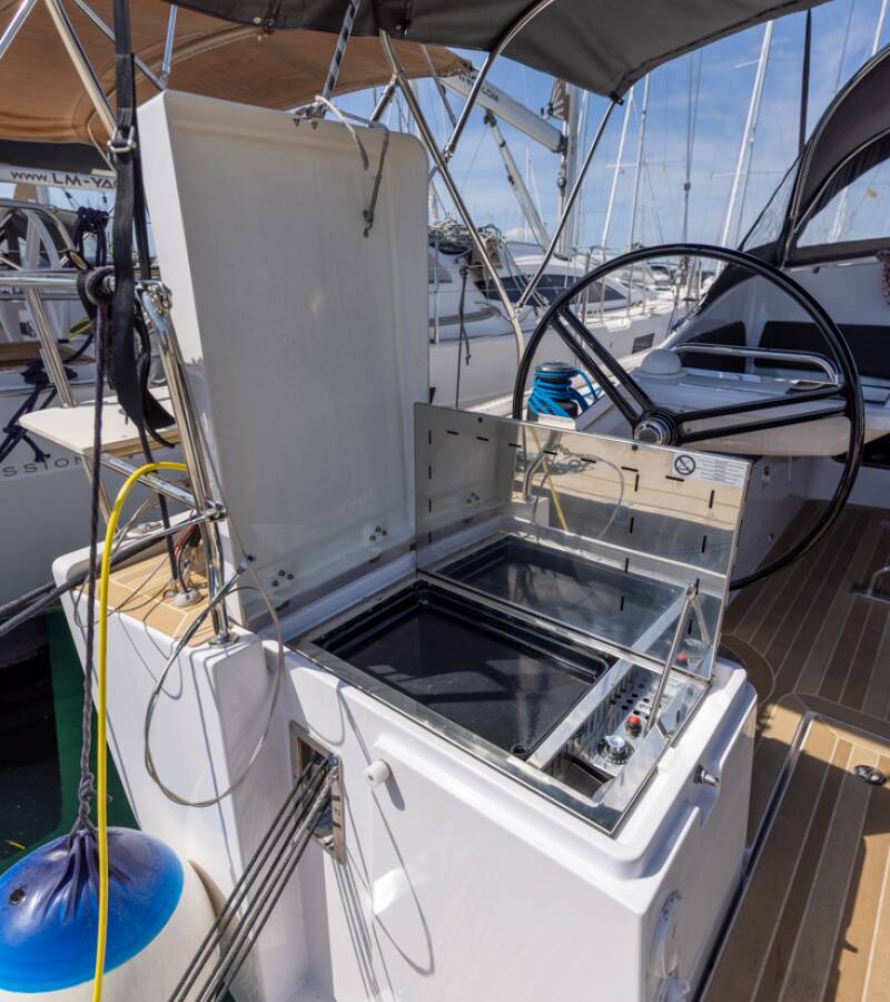 The Elan Impression 45 „Stargazer“ offers special comfort with the following equipment features: Bow thruster, Air Conditioning, Freezer, Cockpit cushions, Bathing platform, Inverter, Solar panels, Cockpit grill.