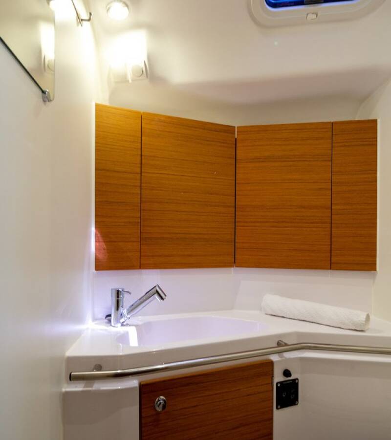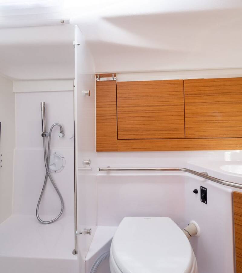 The Elan Impression 45 „Vera“ offers special comfort with the following equipment features: Bow thruster, Air Conditioning, Cockpit cushions, Inverter, Electric toilet.