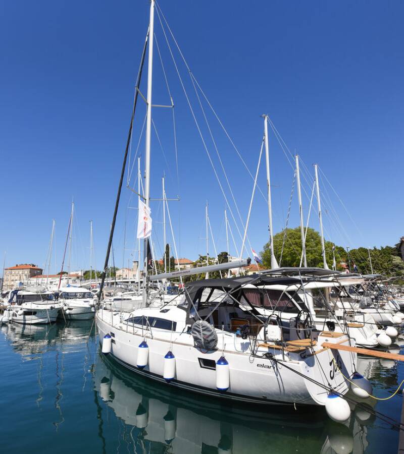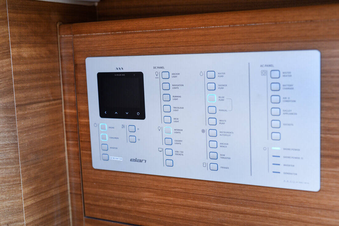The Elan Impression 45.1 „Jola“ offers special comfort with the following equipment features: Bow thruster, Generator, Air Conditioning, Cockpit cushions, Bathing platform, Inverter, Electric toilet, Solar panels, Cockpit grill.
