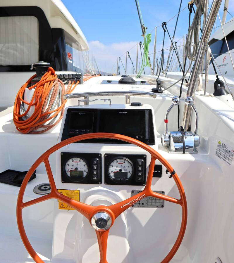 The Excess 11 „Starfish“ is equipped with a mainsail and a genoa as well as a Bimini top, Autopilot, Sprayhood, GPS chart plotter - cockpit.