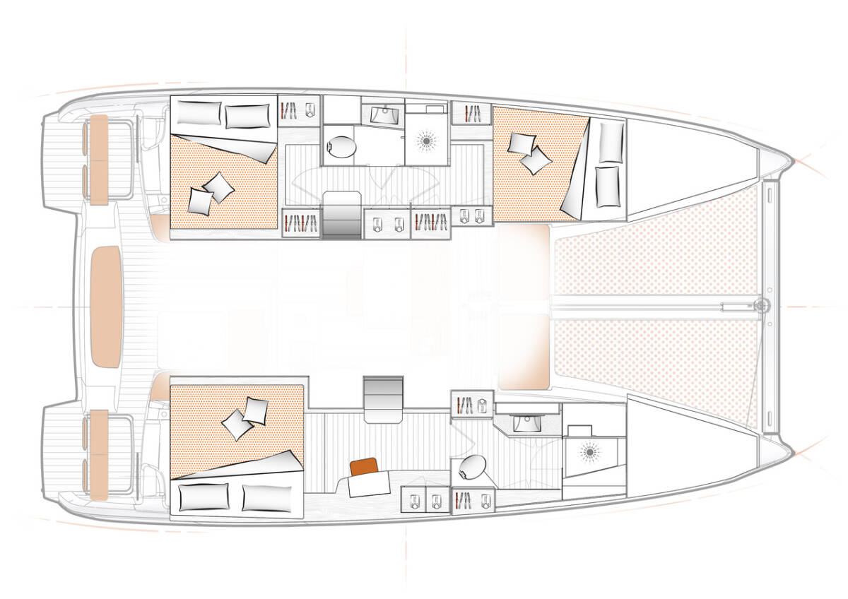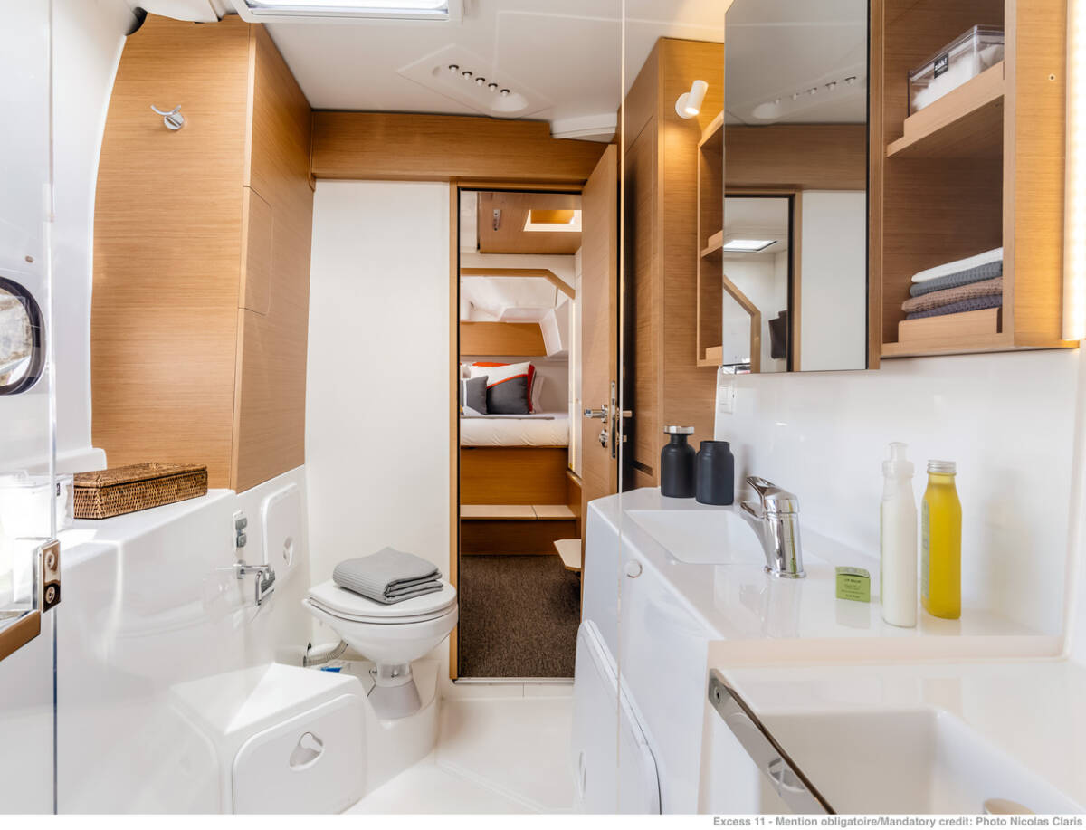 The Excess 11 „The Nauti Salesman“ offers special comfort with the following equipment features: Generator, Air Conditioning, Inverter, Electric toilet.