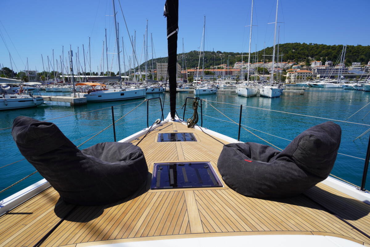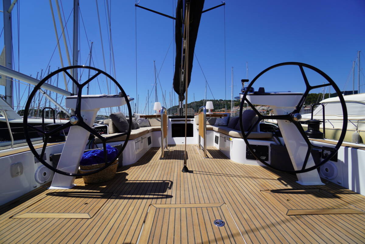 The First 53 „Zenith“ is equipped with a mainsail and a genoa as well as a Bimini top, Autopilot, Sprayhood, Heating, Teak cockpit, GPS chart plotter - cockpit.