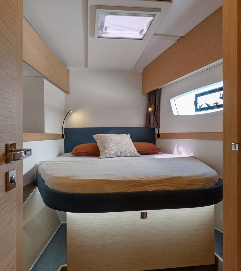 The Fountaine Pajot Astrea 42 „Agitation“ offers special comfort with the following equipment features: Generator, Air Conditioning, Freezer, Cockpit cushions, Inverter, Electric toilet, Cockpit grill.