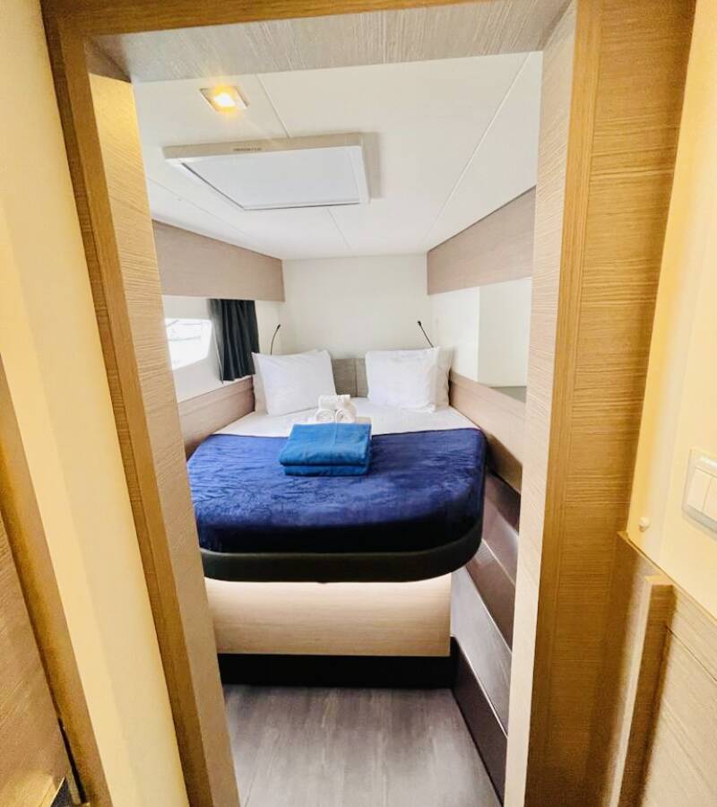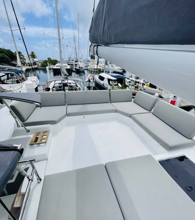 The Fountaine Pajot Elba 45 „Pau Hana II“ is equipped with a mainsail and a genoa as well as a Autopilot.