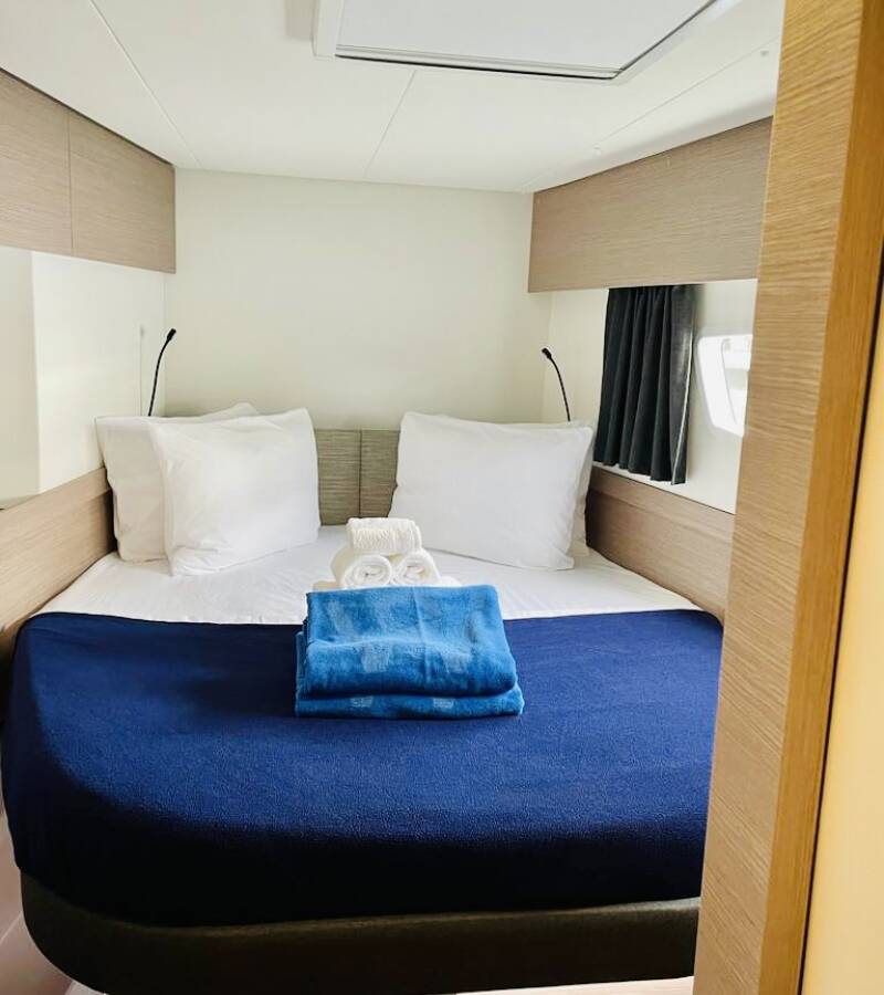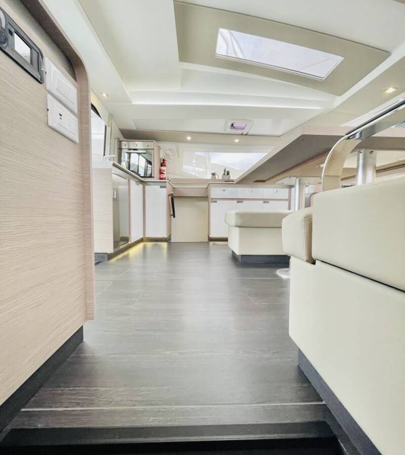 The Fountaine Pajot Elba 45 „Pau Hana II“ offers special comfort with the following equipment features: Generator, Air Conditioning, Inverter, Electric toilet.
