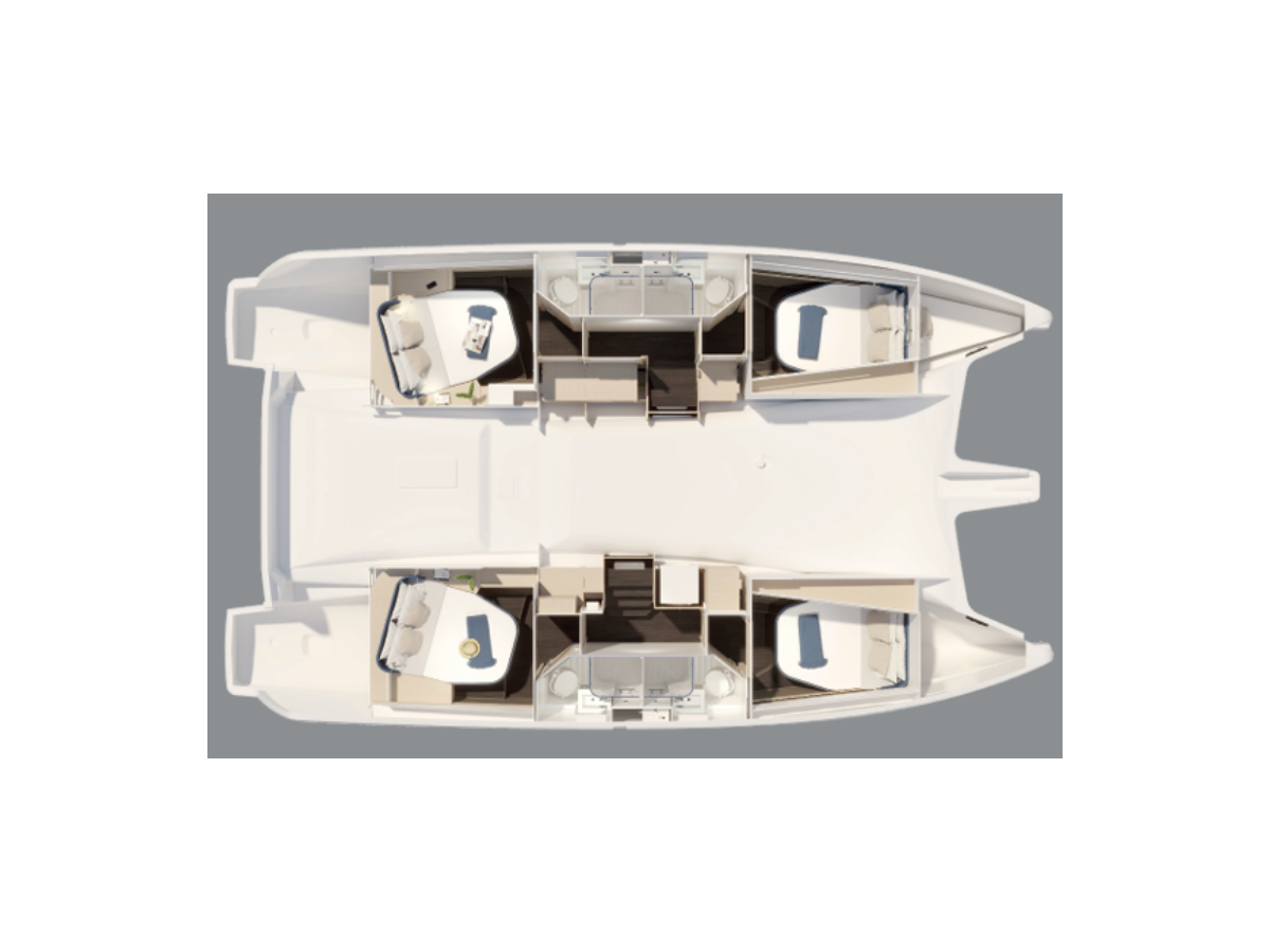 The Fountaine Pajot FP 44 Quatuor ELECTRIC „MANATEE “ offers special comfort with the following equipment features: Generator, Air Conditioning, Cockpit cushions, Inverter, Electric toilet.