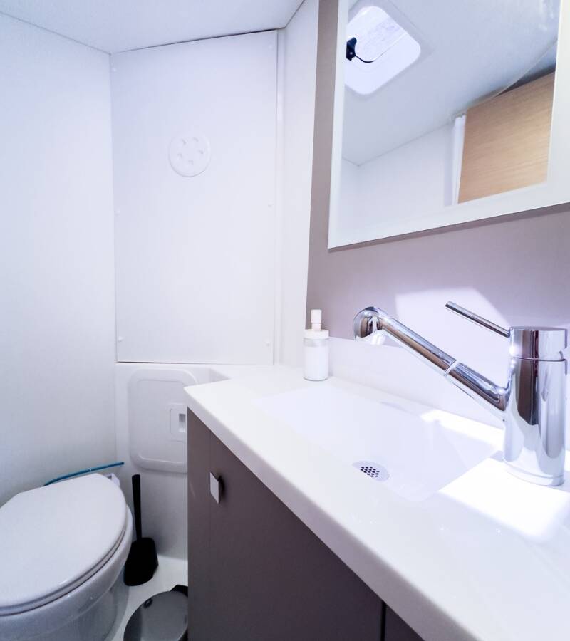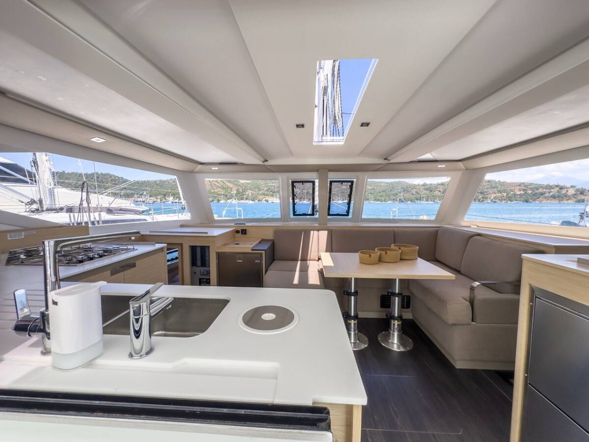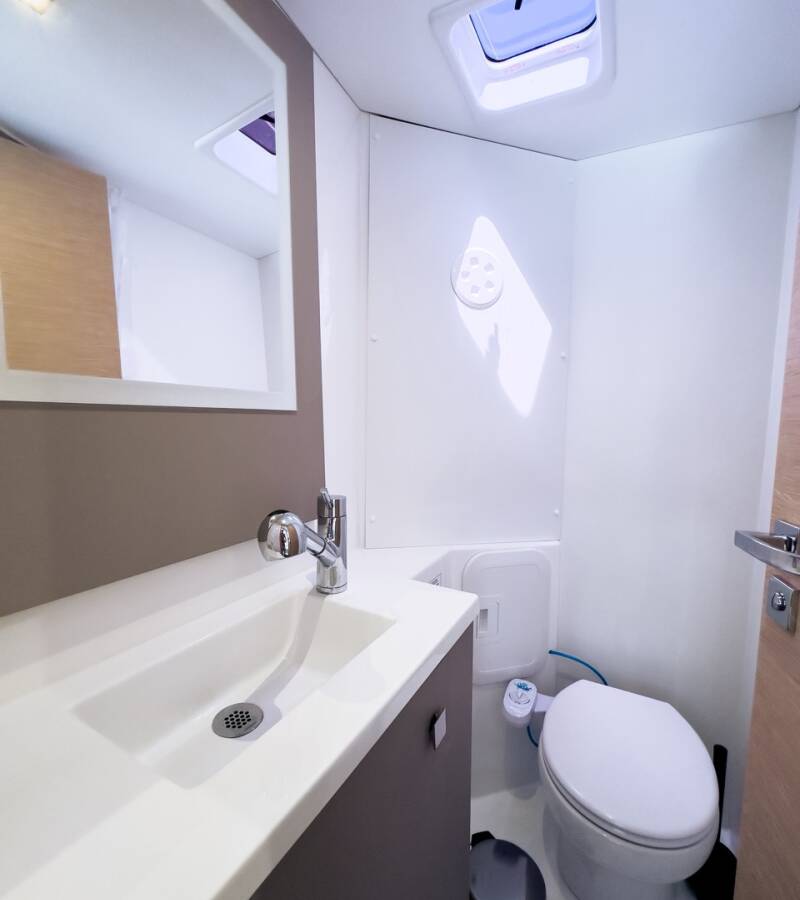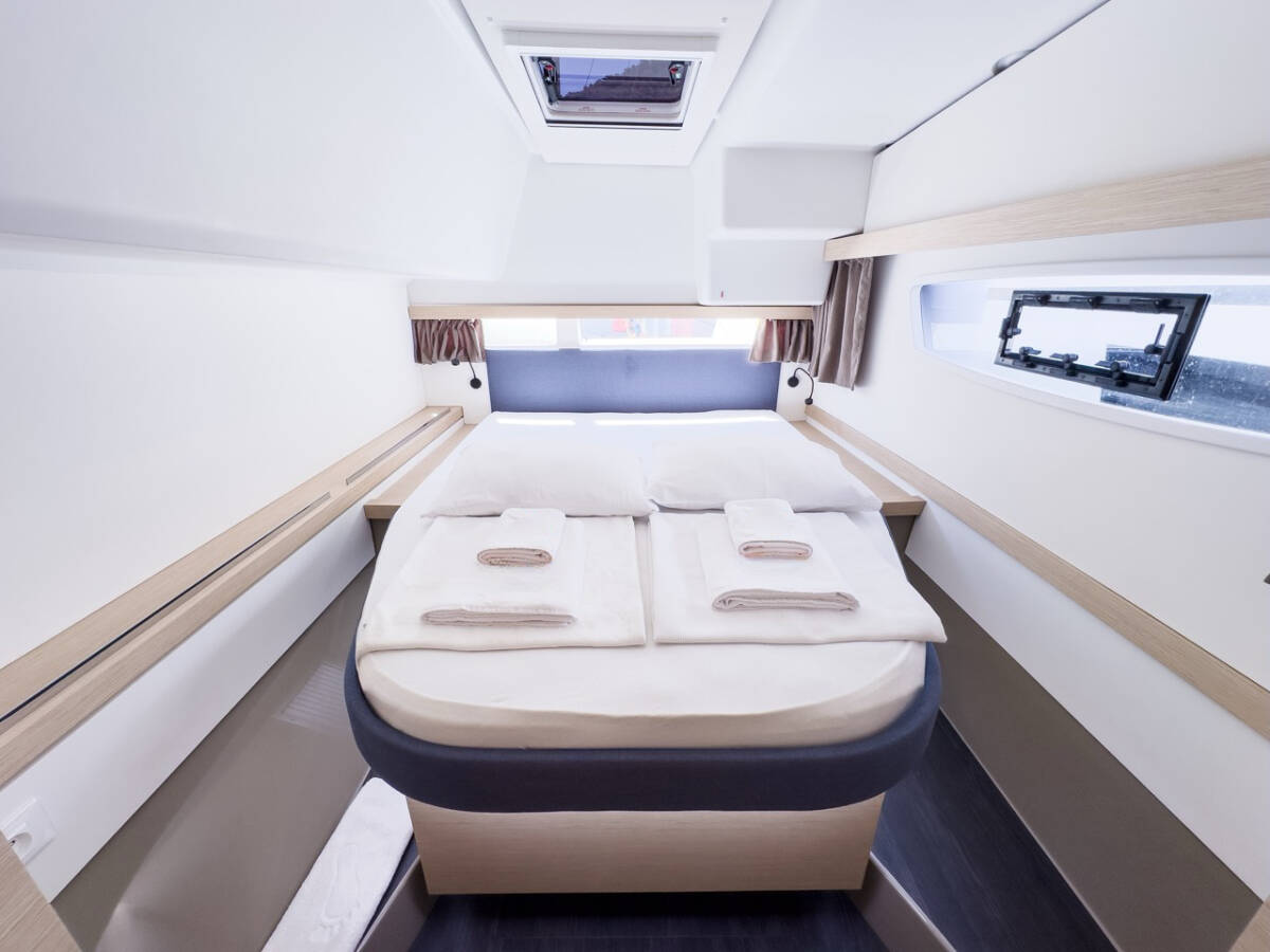 The Fountaine Pajot Isla 40 „Portofino“ offers special comfort with the following equipment features: Generator, Air Conditioning, Cockpit cushions, Bathing platform, Inverter, Solar panels.