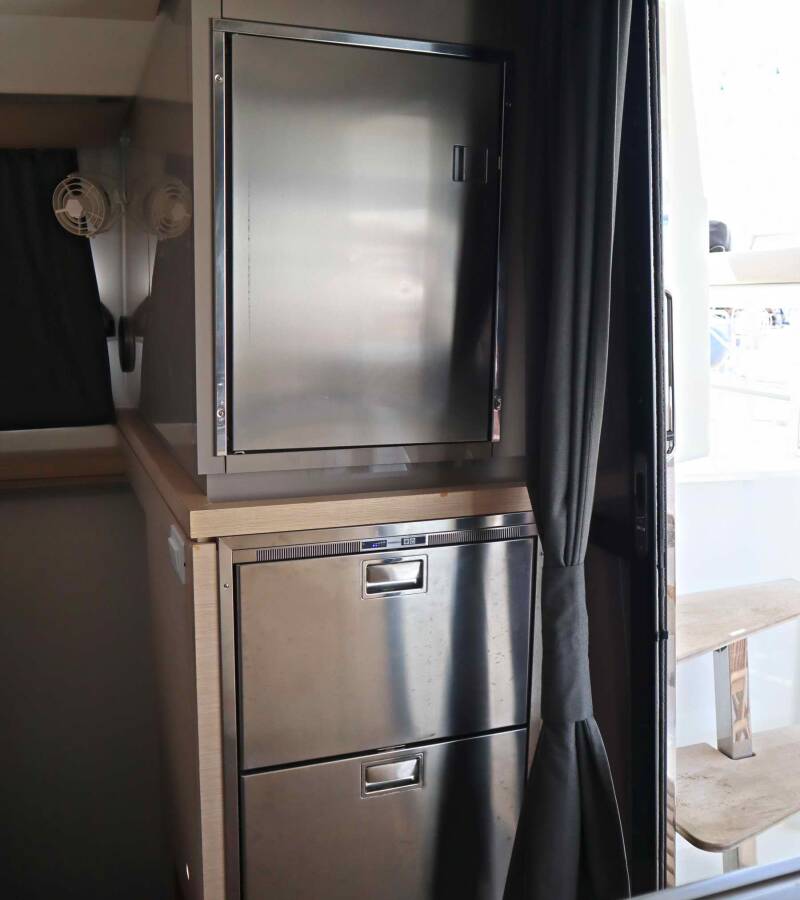 The Fountaine Pajot Lucia 40 „Alisa“ offers special comfort with the following equipment features: Freezer, Cockpit cushions, Inverter, Solar panels.