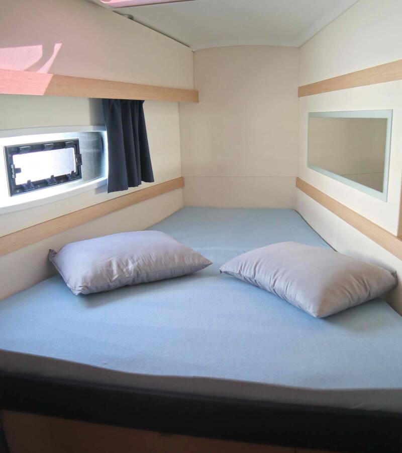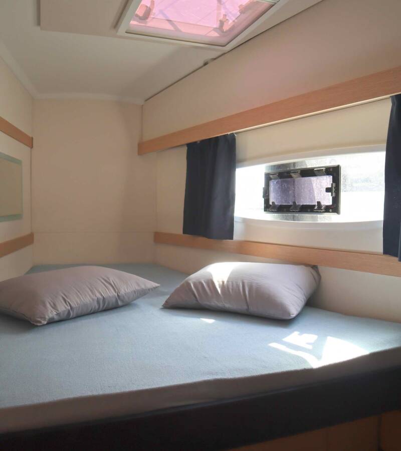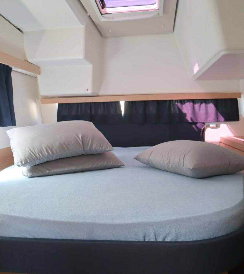 The Fountaine Pajot Lucia 40 „Alisa“ is equipped with a mainsail and a genoa as well as a Bimini top, Autopilot, Sprayhood.