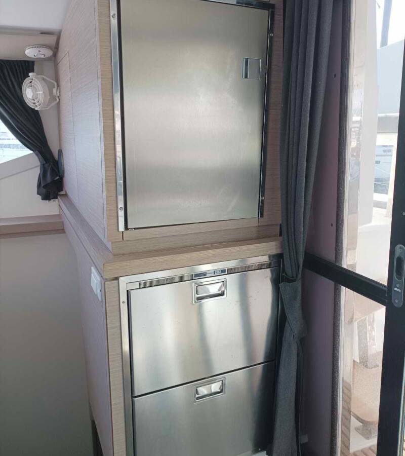 The Fountaine Pajot Lucia 40 „Lucia 69“ offers special comfort with the following equipment features: Cockpit cushions, Electric toilet.