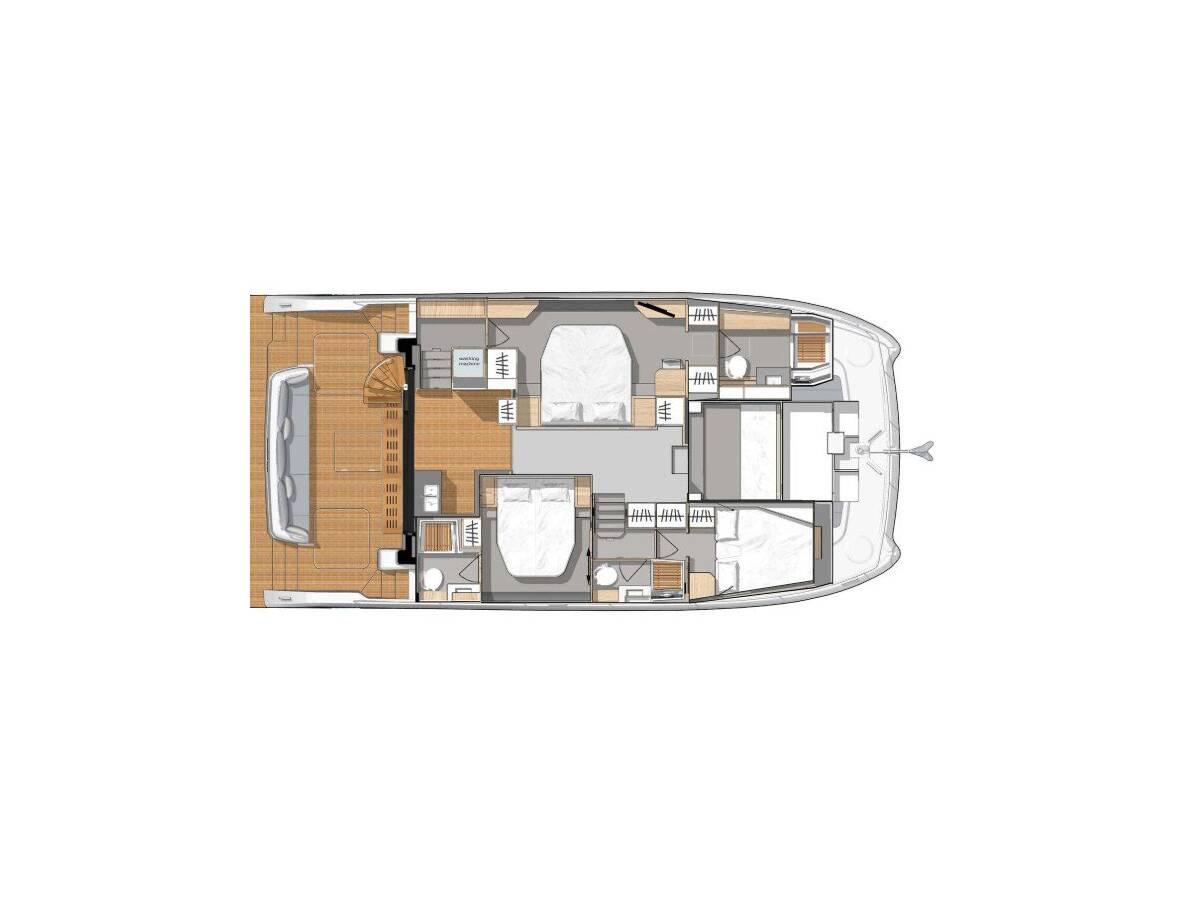 The Fountaine Pajot MY6 „La Dolce Vita“ offers special comfort with the following equipment features: Bow thruster, Generator, Air Conditioning, Freezer, Bathing platform, Inverter, Electric toilet.