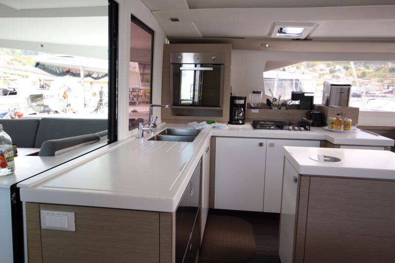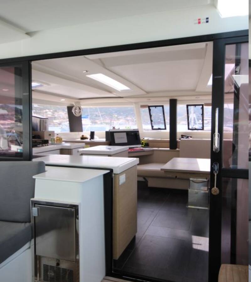 The Fountaine Pajot Saona 47 „La Belle Vie“ offers special comfort with the following equipment features: Generator, Air Conditioning, Bathing platform, Inverter, Solar panels, Cockpit grill.