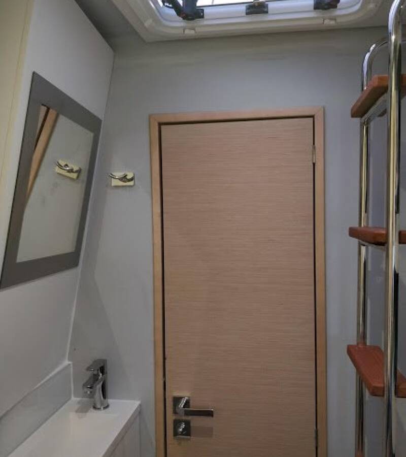 The Fountaine Pajot Saona-47 (5 cab. + 1 crew cab.) offers a unique holiday experience thanks to its comfortable and elegant design. The large, comfortable sunbathing areas at the front of the catamaran invite you to relax and sunbathe. 3 electric winches support the sailing work. All cabins have a comfortable wet area with shower and WC. TV in all cabins provides entertainment even in bad weather. The Fountaine Pajot Saona 47 FELICIA is equipped with air conditioning in all cabins and in the saloon and a 5kW inverter. There is heating on board for cruises in the early or late season. Solar panels supply the Felicia with environmentally friendly electricity, and on rainy days the generator on board can be used to generate electricity. The galley also has a microwave, a 90-litre freezer compartment, convection oven, Nespresso coffee machine and a dishwasher. She is also equipped with modern underwater lighting. Our yachts are equipped with C.I.G.O. Charter Information Guide Online. Unlimited internet, dinghy and outboard engine are included in the charter price.
