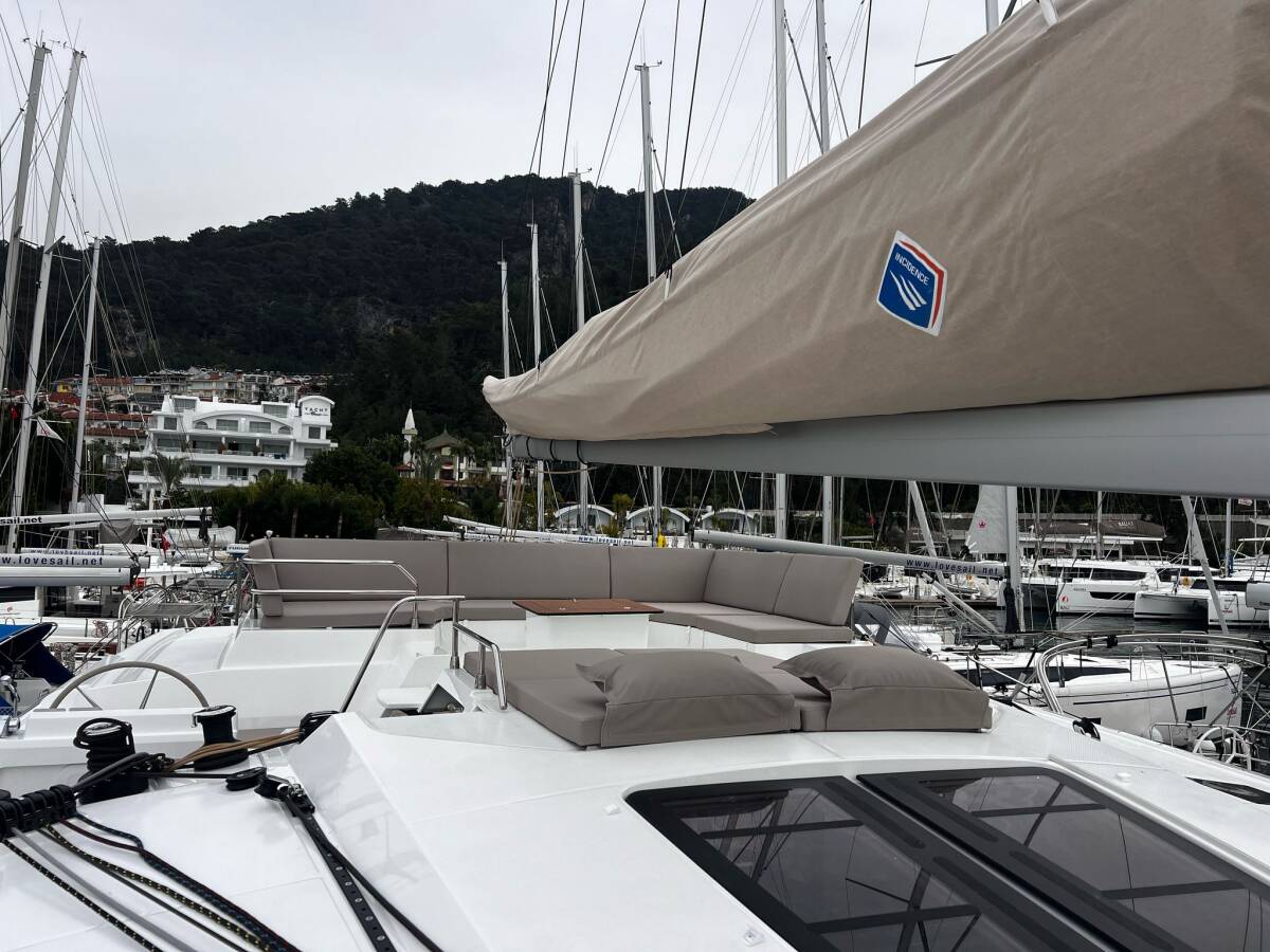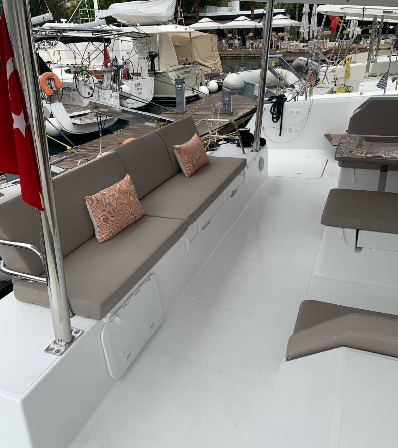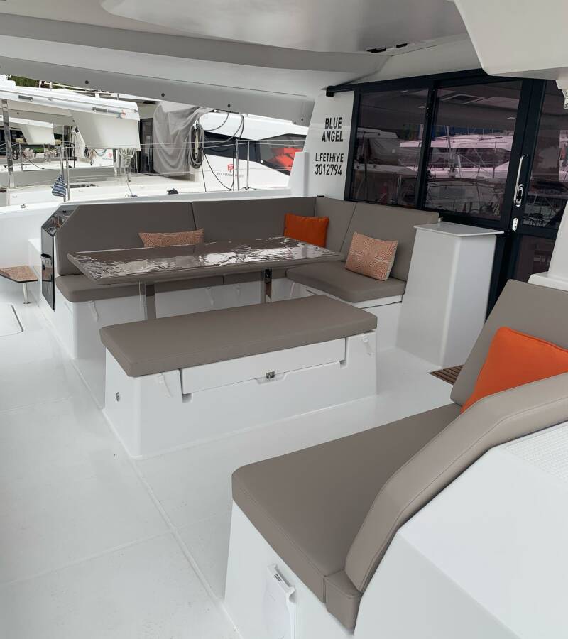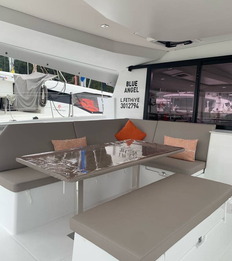 The Catamaran Fountaine Pajot Tanna 47 „Blue Angel“, built in 2025, is moored in Fethiye, Yacht Classic Hotel Marina - Turkey. The yacht has 5 + 1 cabins, can accomodate 10 + 1 persons and has 6 toilets/showers.
