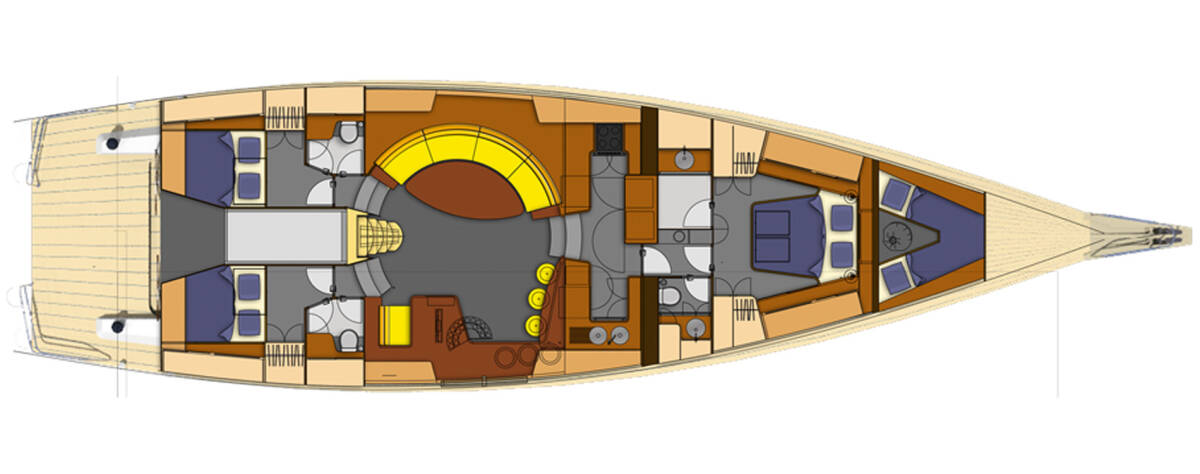 The Garcia 72.2 „Makay“ is equipped with a mainsail and a genoa as well as a Radar, Autopilot, Heating, Teak cockpit.