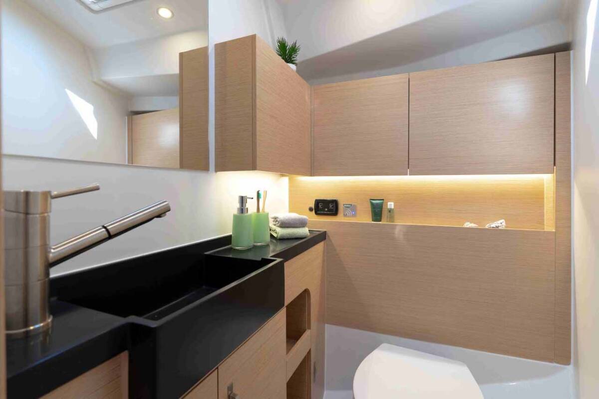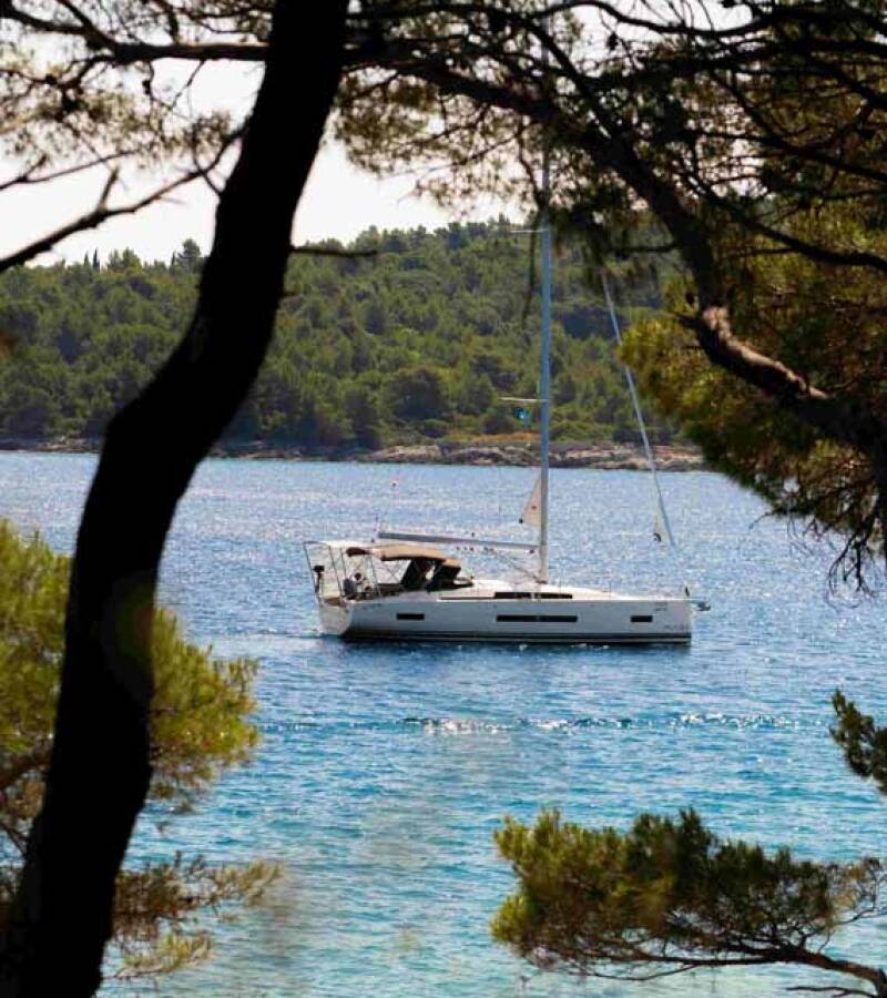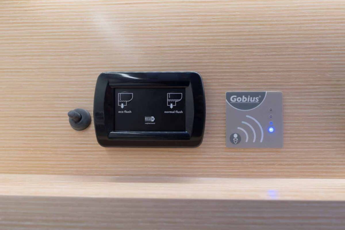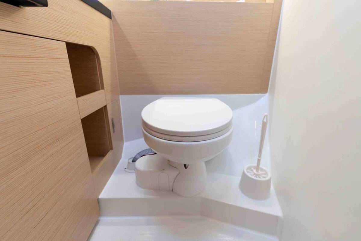 The Hanse 410 „Mare Sol“ offers special comfort with the following equipment features: Bow thruster, Cockpit cushions, Inverter, Electric toilet, Solar panels.